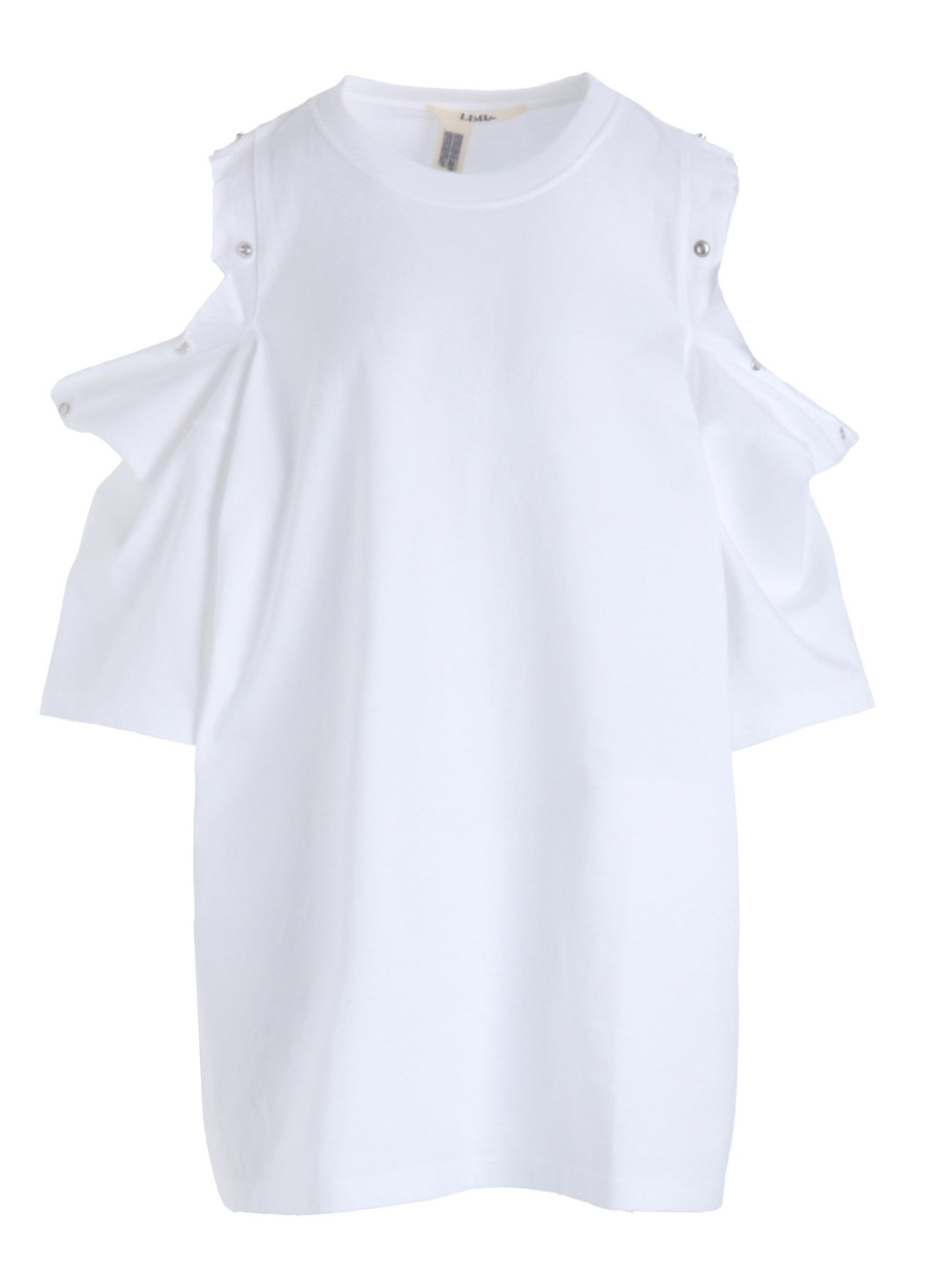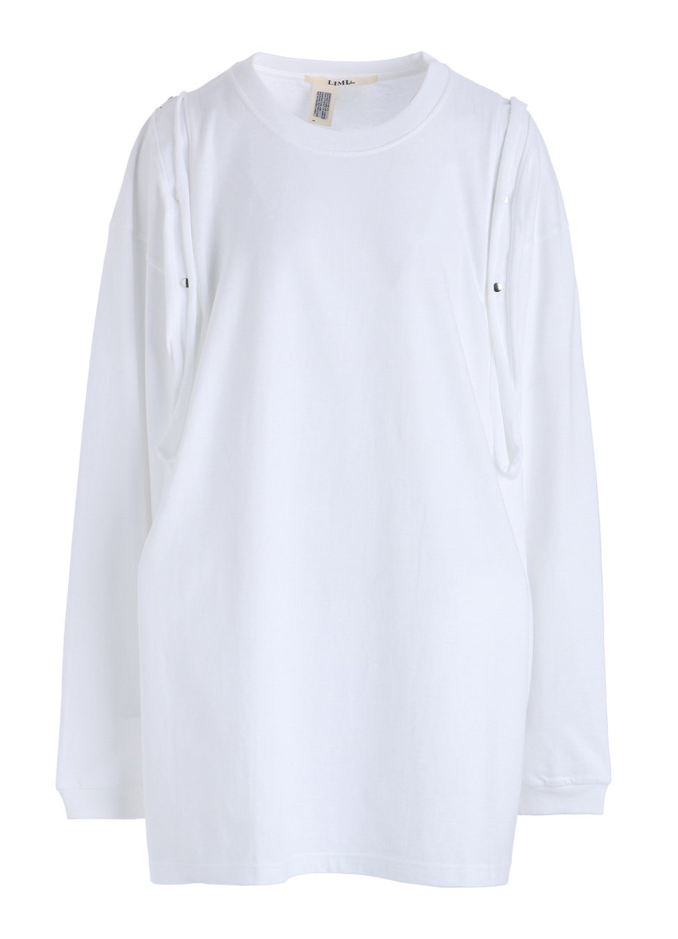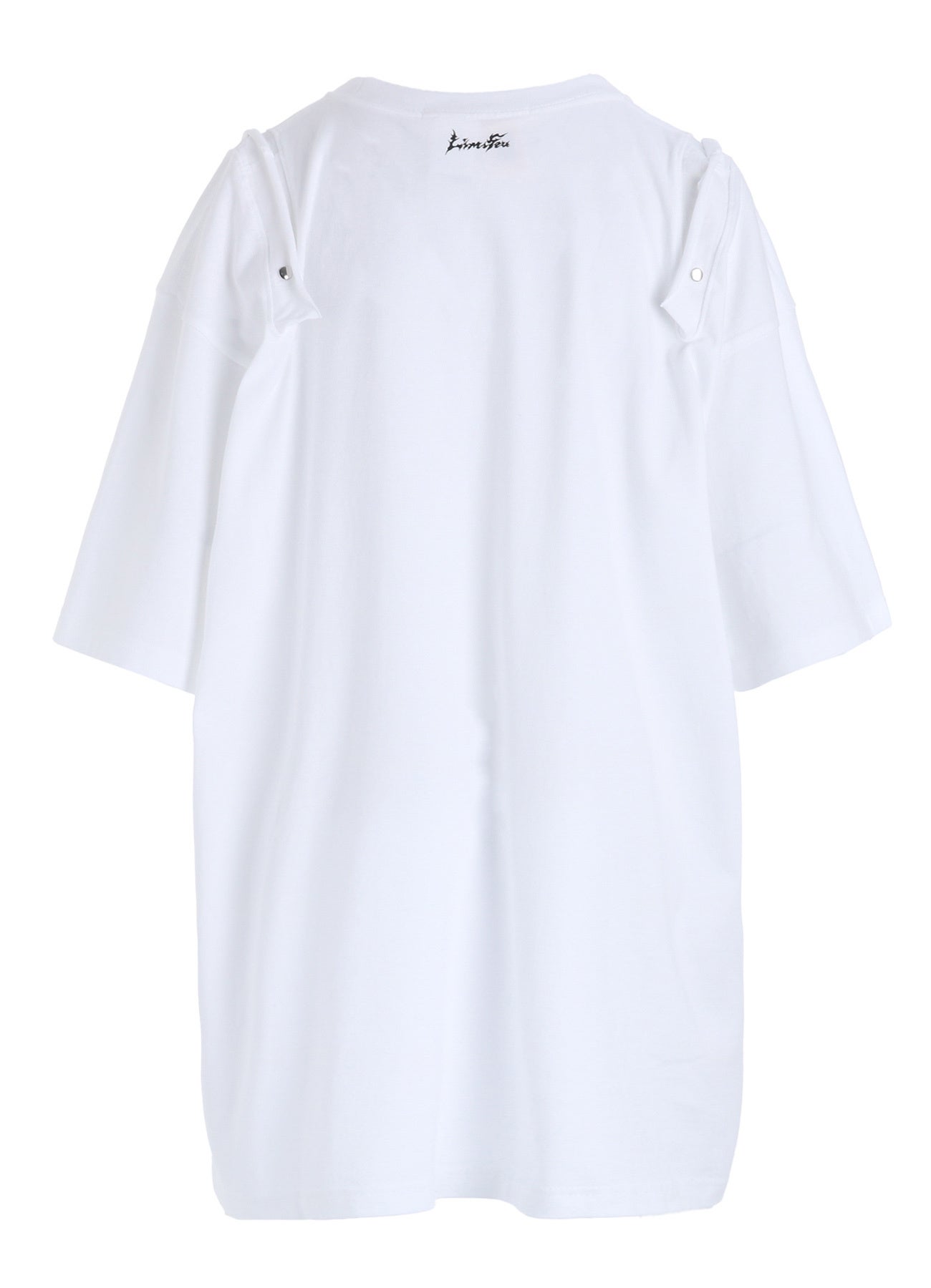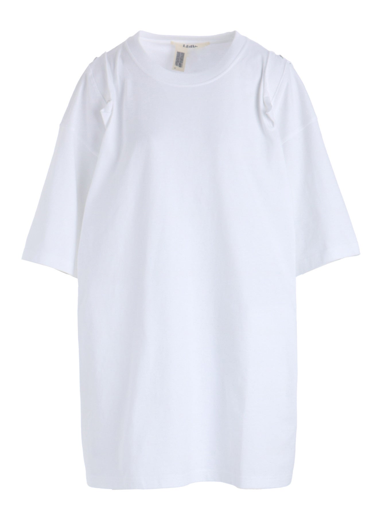 本シリーズでは半袖と長袖2型を、ブラック、ホワイトの2色で展開。いずれも肩に配されたスナップボタンを開閉することで、シルエットやバランスの変化をもたらすデザインが特徴です。