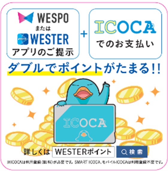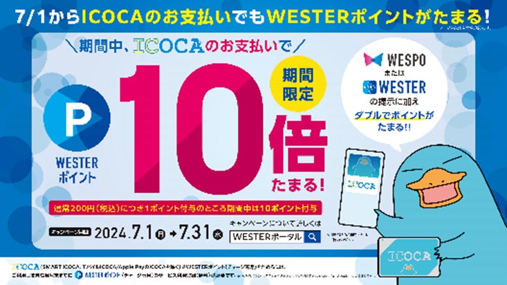 また、本サービスの開始を記念して『ICOCAのお支払いでWESTERポイント10倍たまる』キャンペーンを実施いたします。