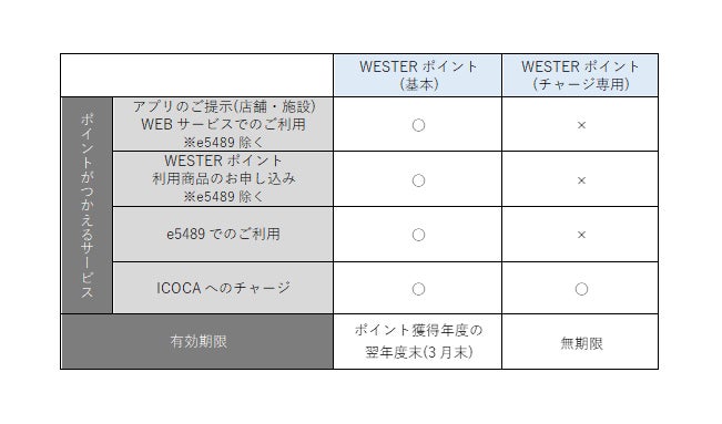 ※注 WESTERポイント(基本)とWESTERポイント(チャージ専用)のつかえるサービスの違いは下記をご参照ください。