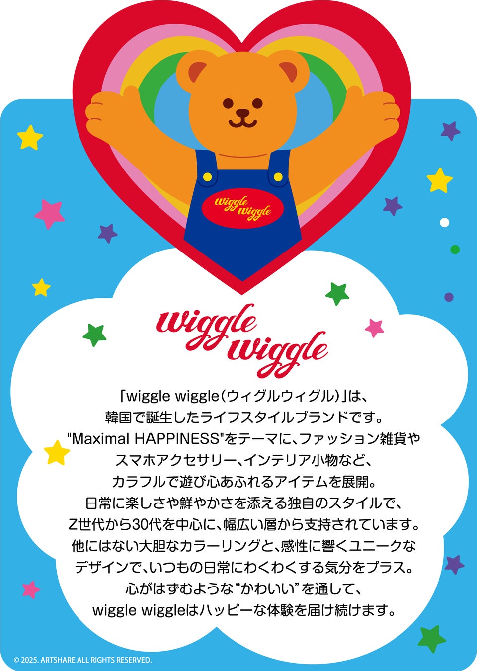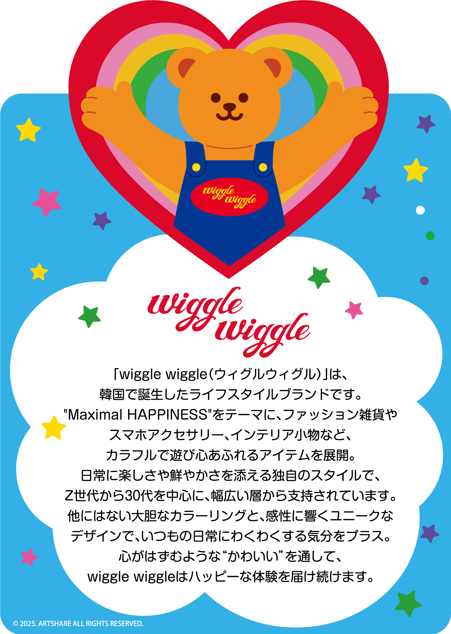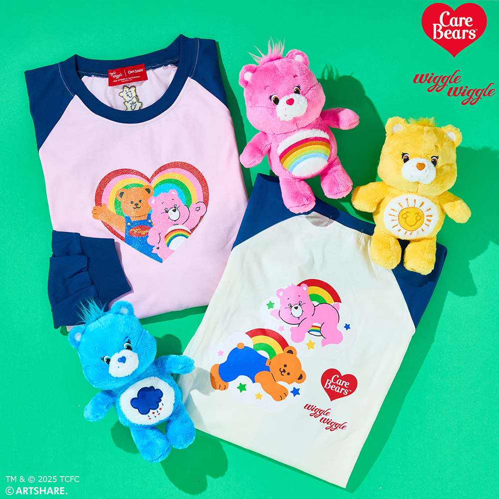 日本初の常設店を原宿に構え、アミューズメントパークのような空間で話題を集める「wiggle wiggle」。ブランドの人気キャラクターであるウィグルベアとが仲良く横に並んだデザインは特に必見!「Maximal HAPPINESS」をテーマとするwiggle wiggleの感性と、愛と優しさを届けるケアベア™のかわいらしさが合わさり、ここでしか見られない特別なコレクションが誕生しました。