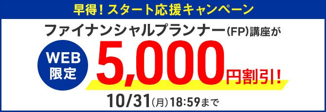 2022年10月31日(月)18:59まで、WEBからのお申込み限定でファイナンシャルプランナー(FP)講座の受講料を5,000円割引いたします。
