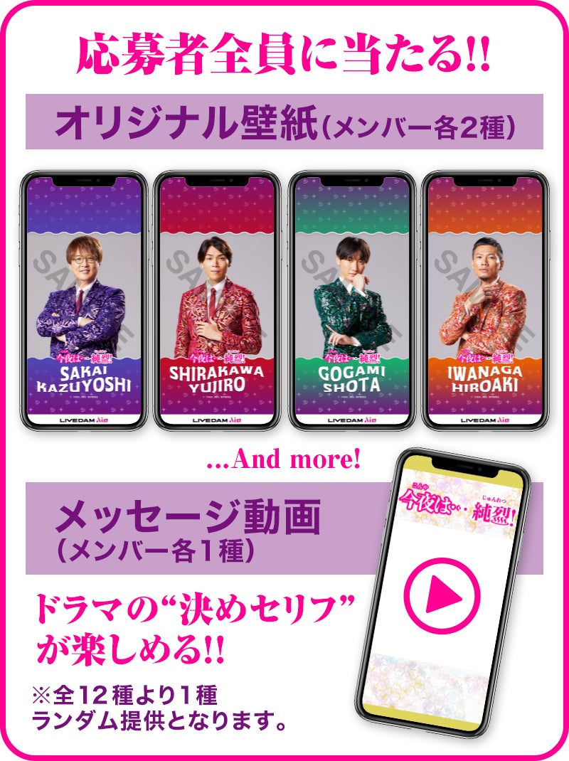 【応募者全員】オリジナル壁紙とメッセージ動画(全12種より1種をランダムに提供)