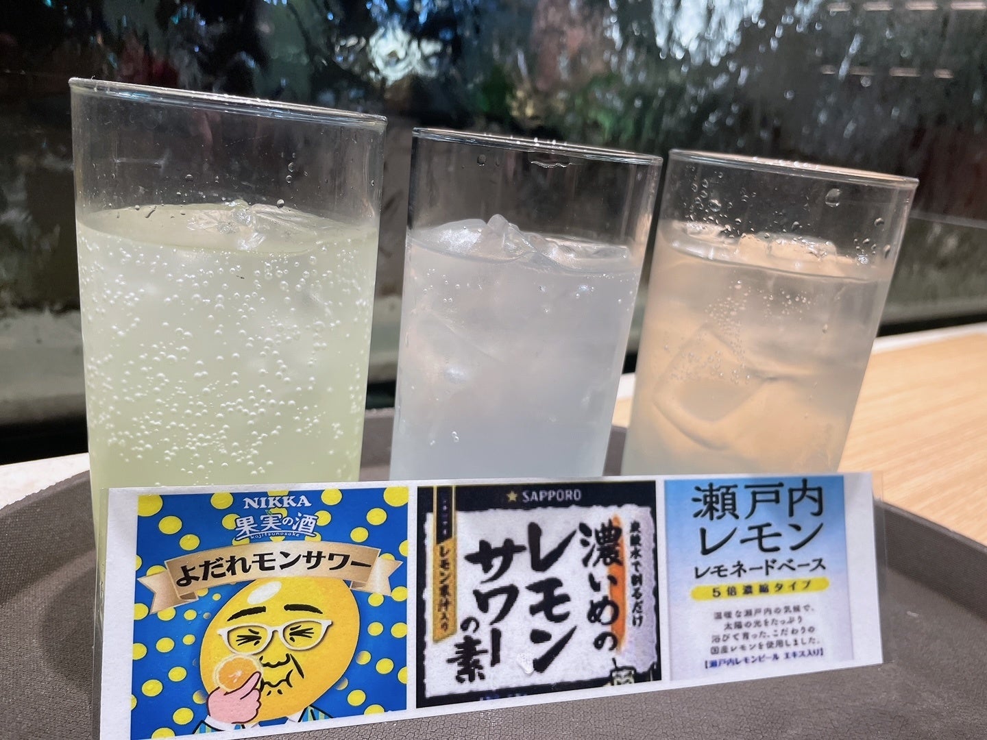 〇レモンサワーセットは「濃いめのレモンサワー」と瀬戸内レモンピールエキスが入った「瀬戸内レモンサワー」クエン酸たっぷりで飲んだ瞬間よだれが出るほど酸っぱい「よだれモンサワー」