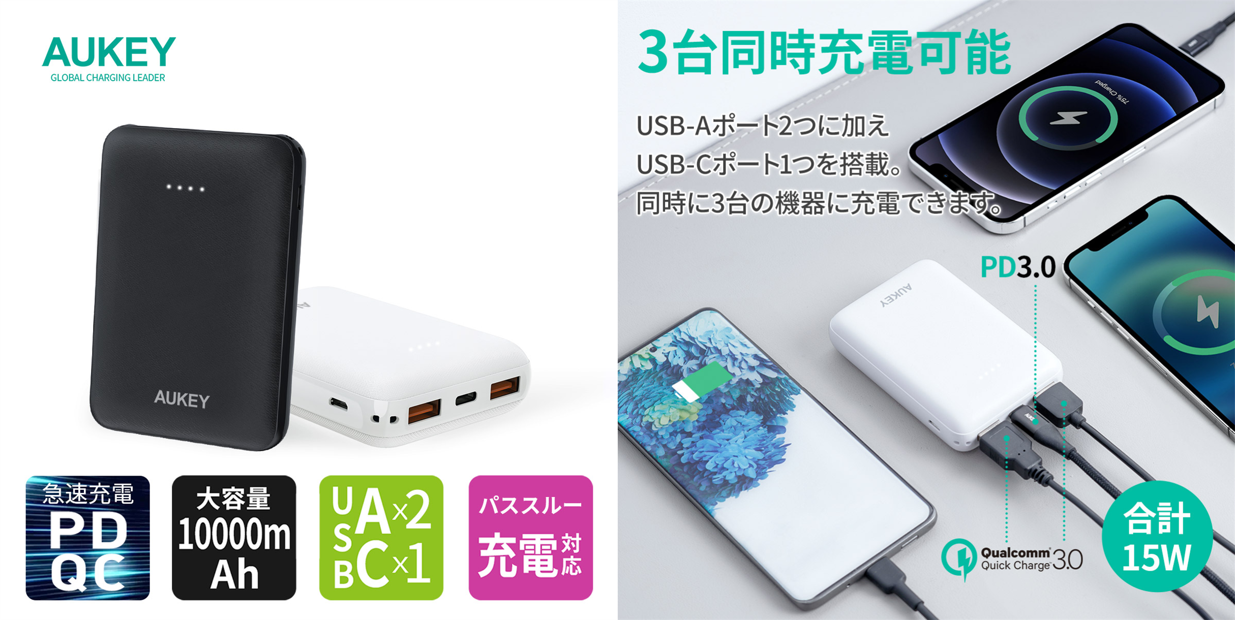 AUKEYのモバイルバッテリーは利用シーンに合わせてお選びいただけ、日常生活をもっと便利に、アクティブなものにするでしょう。お得なこの機会をぜひお見逃しなく♪
