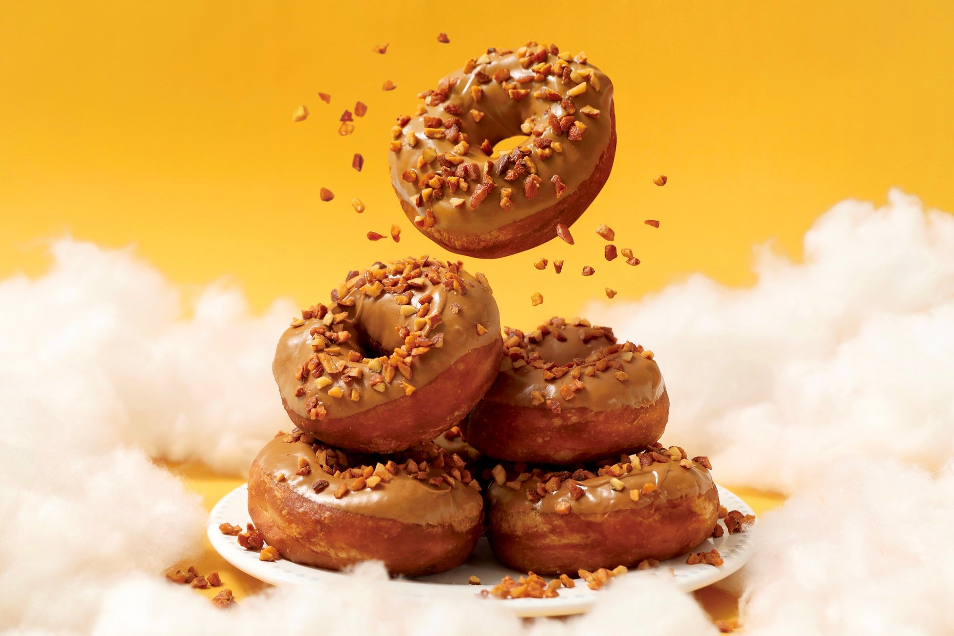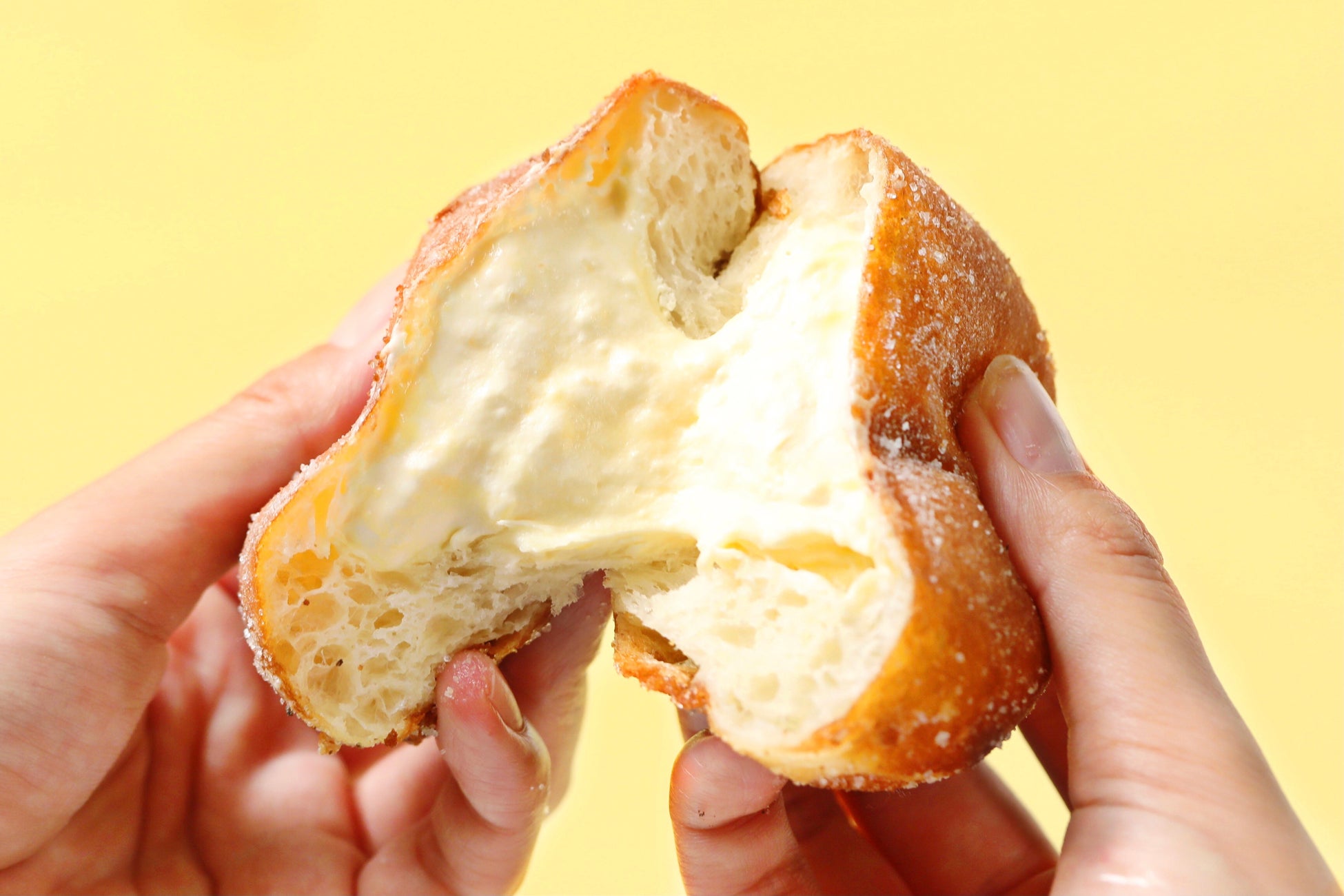 「ふわとろ生ドーナツ」は、2024年7月より新発売し、発売わずか5ヶ月で累計販売個数40万個※1を突破した、“ふわっ、とろっ”とした新食感が人気のドーナツです。何度も試作を重ねて完成させた、国産小麦を使用した低温長時間発酵のこだわり生地は、軽やかな食感でふわっ、とろっ、もちっ、しっとり。その柔らかさは、手で持つと崩れてしまいそうなほどふわふわに仕上げました。