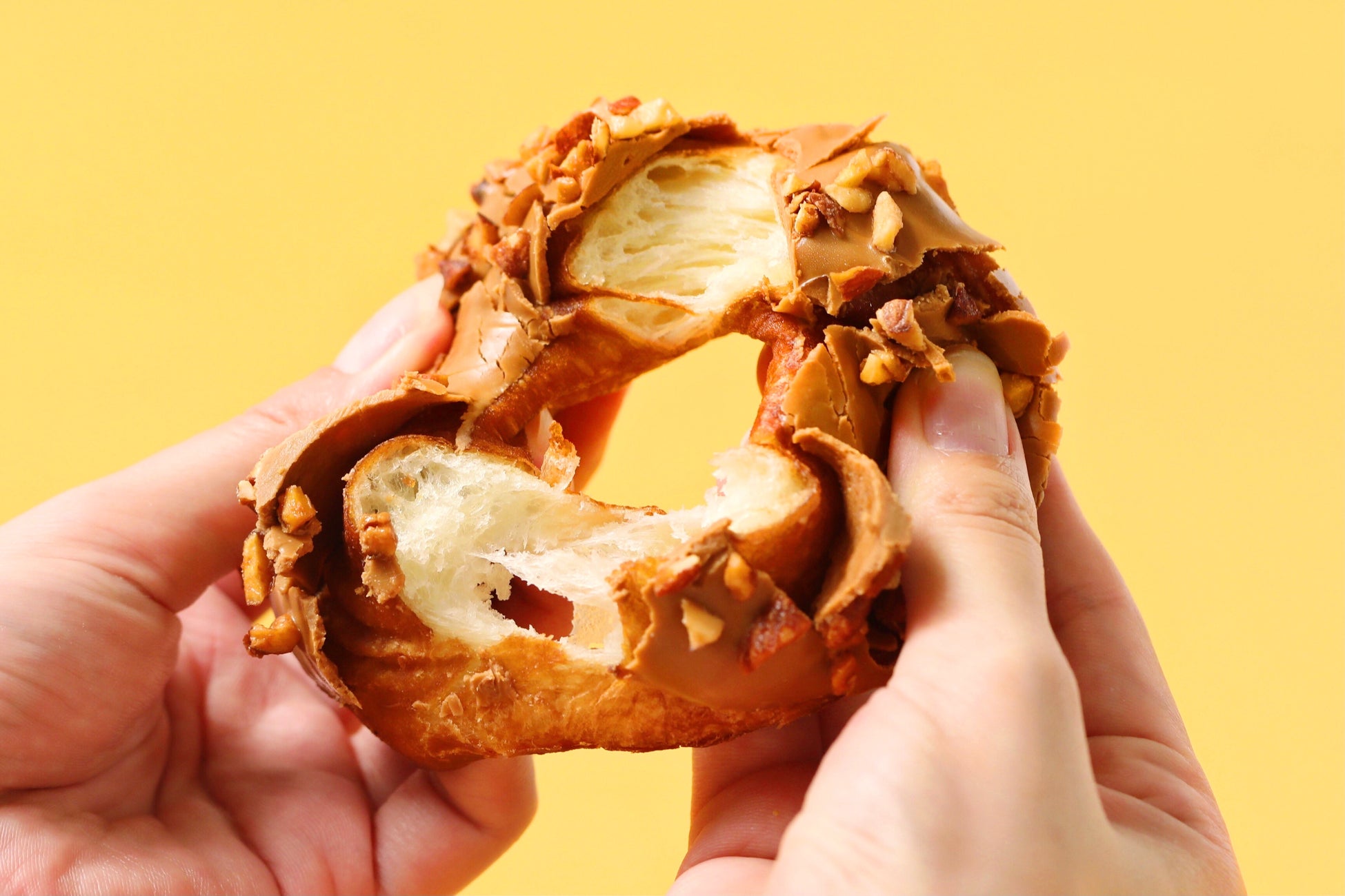 このたび、沢山の反響をいただき、2025年1月6日(月)より「ふわとろ生ドーナツ」の新フレーバーが初登場いたします。新フレーバーは、ココアビスケットのザクザク感も楽しめる「ホワイトチョコ×クッキー」、カスタード風味のクリームとホイップクリームを詰め込んだ「シュガークリーム」、キャラメルの甘みとアーモンドの香ばしさが広がる「キャラメルナッツ」の全3種類。