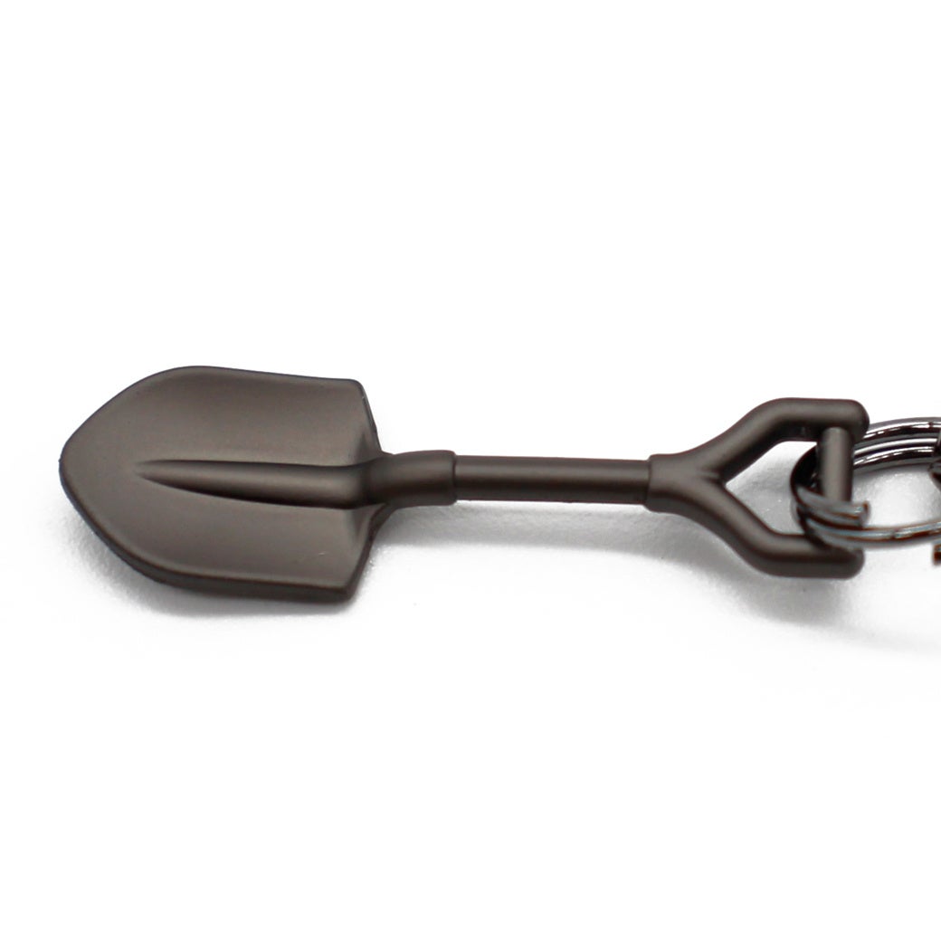 付属のスコップ型フィギュアやJIMNYロゴプレートなど、随所に遊び心をプラス。キーチェーンとして使用すると、各パーツが触れ合い金属音が鳴り響き、まるで“熊よけの鈴”のような存在感を発揮します。