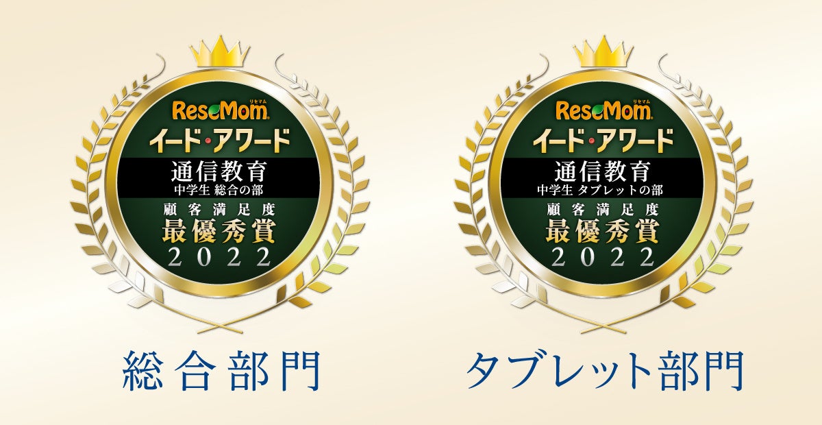 ※イード・アワード:株式会社イード( https://www.iid.co.jp/ )が主催するイード・アワード2012〜2022「通信教育中学生総合」、2017〜2022「通信教育中学生タブレット」において最優秀賞を受賞しています。