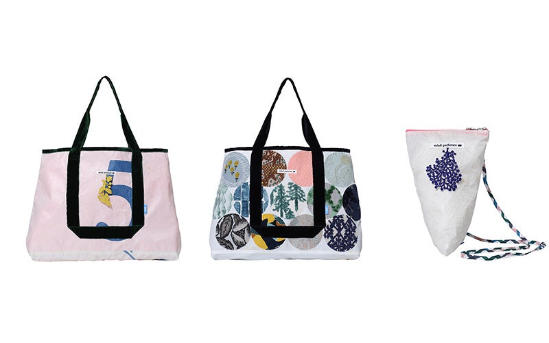 役目を終えたヨットのセイル(帆)を回収・アップサイクルするHELLY HANSENの「VINDKRAFT」プロジェクトをもとに、minä perhonenが、自身の生産工程における端材を組み合わせてバッグをデザインしました。セイルクロスに刻まれた歴史を物語る経年の跡をあえて避けずに製品に取り入れ、裁断後の廃棄物を極力減らしています。セイルの出自を記載したトラッキングネームが付属します。