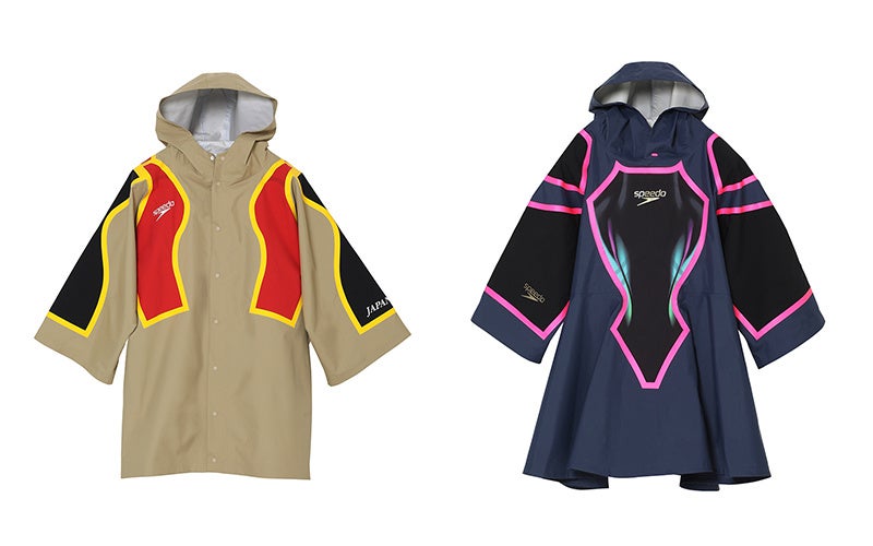機会に恵まれず、未着用のまま保管されていたアスリート向けスイムウェアを解体し、キッズサイズのレインポンチョとして再構築しました。Speedoを代表するFastskinシリーズのスイムウェアの機能素材や特殊なカッティングを、FUMITO GANRYUが新たな視点でデザインとして昇華。極力フラットに仕上げた接着面、内側に施した防水性を高めるシームシーリング加工など、レインウェアとしても高度な技術を駆使しています。