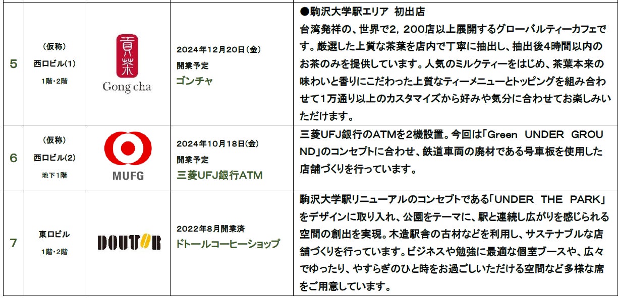 田園都市線地下区間5駅リニューアルプロジェクト「Green UNDER GROUND」第1弾 駒沢大学駅において2024年10月18日(金)から店舗が順次開業!