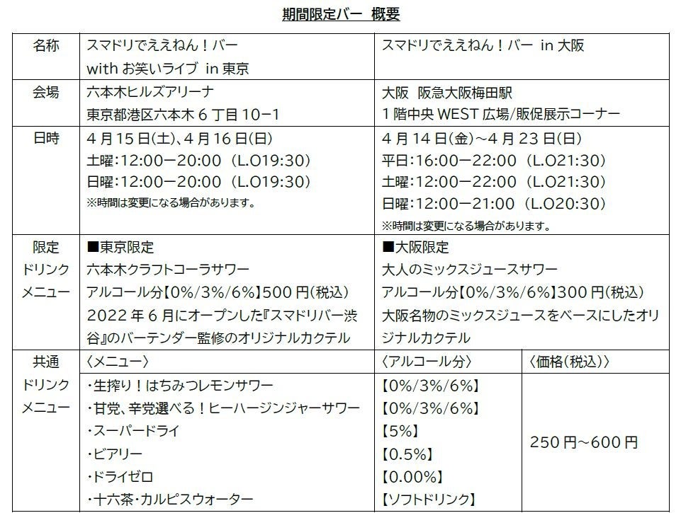 アサヒビール株式会社(本社 東京、社長 松山一雄)は、吉本興業株式会社(本社 東京、社長 岡本昭彦)と『We are飲みトモ!スマドリでええねん!PROJECT!』を3月30日から開始します。行動憲章に『「誰もが、いつでも笑顔や笑い声をもてる社会」の実現』を掲げる吉本興業とコラボレーションすることで、飲める人と飲めない人が共に楽しめる文化の醸成を目指します。