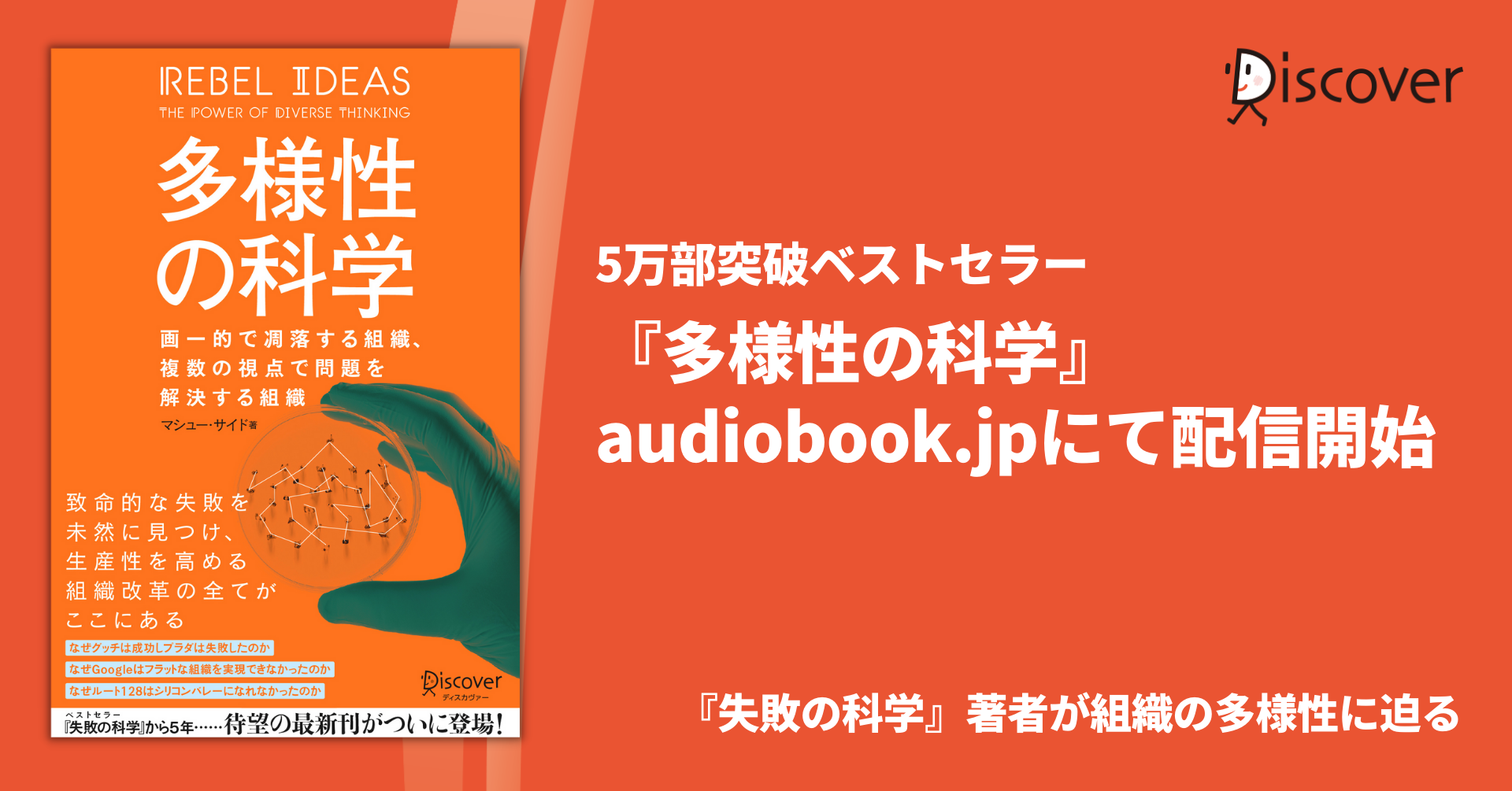 株式会社ディスカヴァー・トゥエンティワン(本社:東京都千代田区、取締役社長:谷口奈緒美)は、2023年1月16日に、『多様性の科学』(マシュー・サイド 著)のオーディオブック版を、audiobook.jpにて配信開始しました。