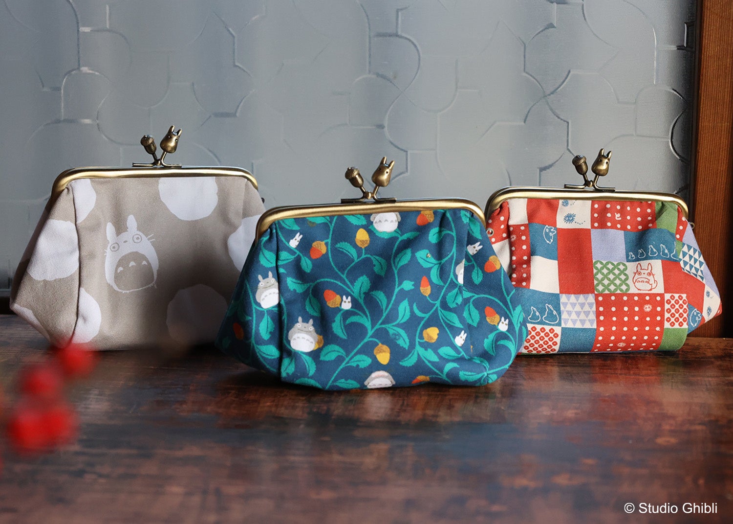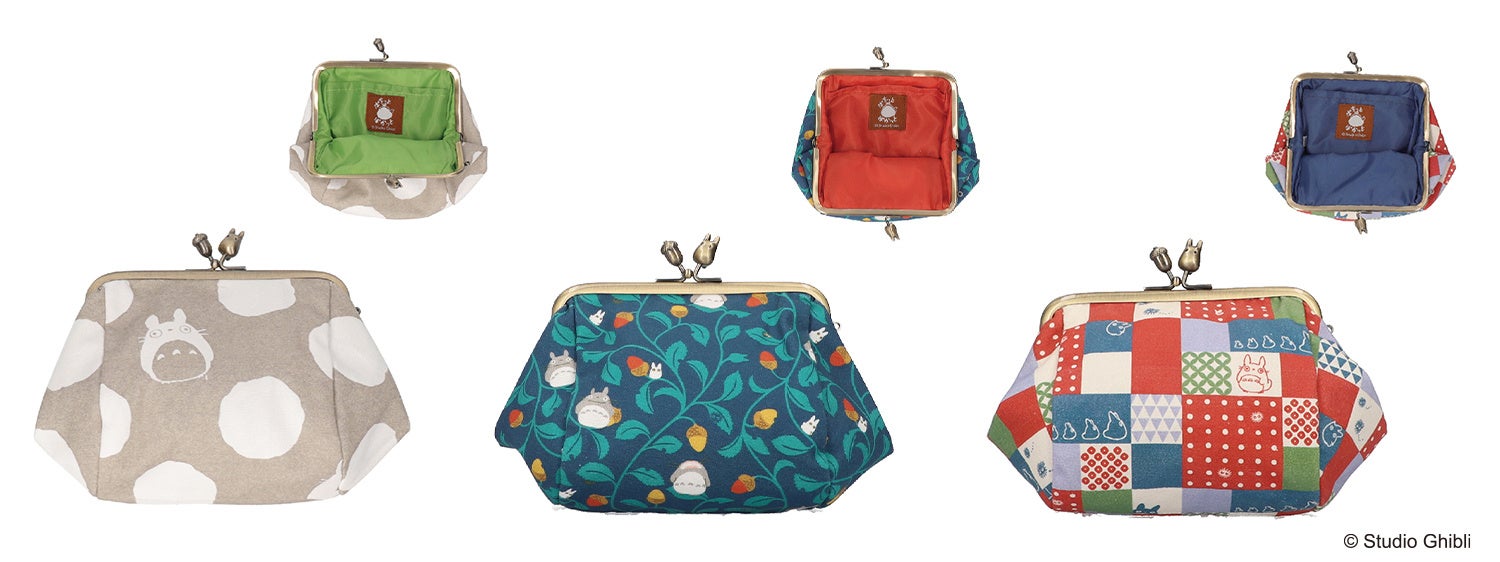 「ぱちっとぱかっとシリーズ」は、小トトロとどんぐりの形をしたオリジナルの口金がかわいらしいがま口シリーズ。「となりのトトロ」をモチーフにした、テイストの違う3種類の和風柄で、ラインナップは「親子がま口」、「がま口ポーチ」、「ショルダーバッグ」の3タイプ展開。ショルダーバッグのうち2種は内生地と外生地が反転した、日々のコーディネートにも合わせやすいシンプルなデザインです。いずれも内生地にシリーズのロゴの織ネームが付いています。ぱかっと開いて収納しやすく、ぱちっと留めたときのコロンとした丸いフォルムがかわいらしい、日常使いしやすい和風の布小物シリーズが登場します。