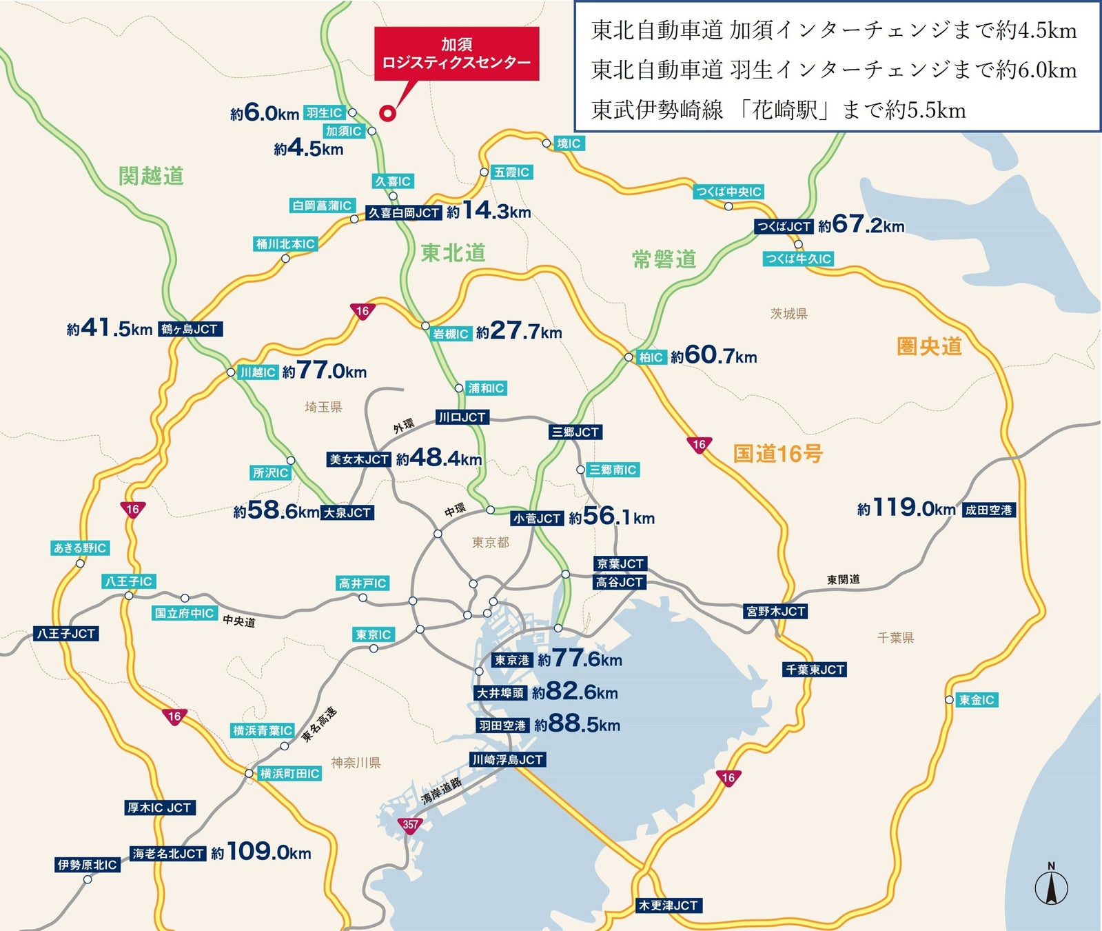 交通手段:東北自動車道 加須インターチェンジまで約4.5km
