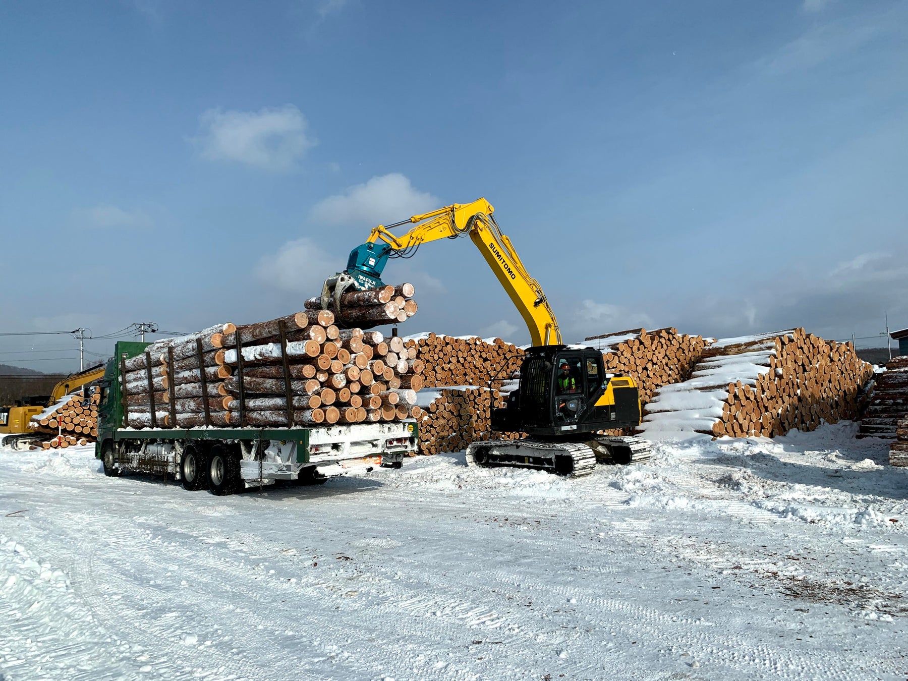 「しもかわしいたけ」は、北海道産のミズナラとシラカバの樹木を細かく砕いたオガコに米ぬかなどの穀物を混ぜ、さらに水を加えてブロック状に固めた菌床から発生させています。菌床製造、しいたけの発生、収穫、出荷にいたるまで、すべて自社工場で行われています。