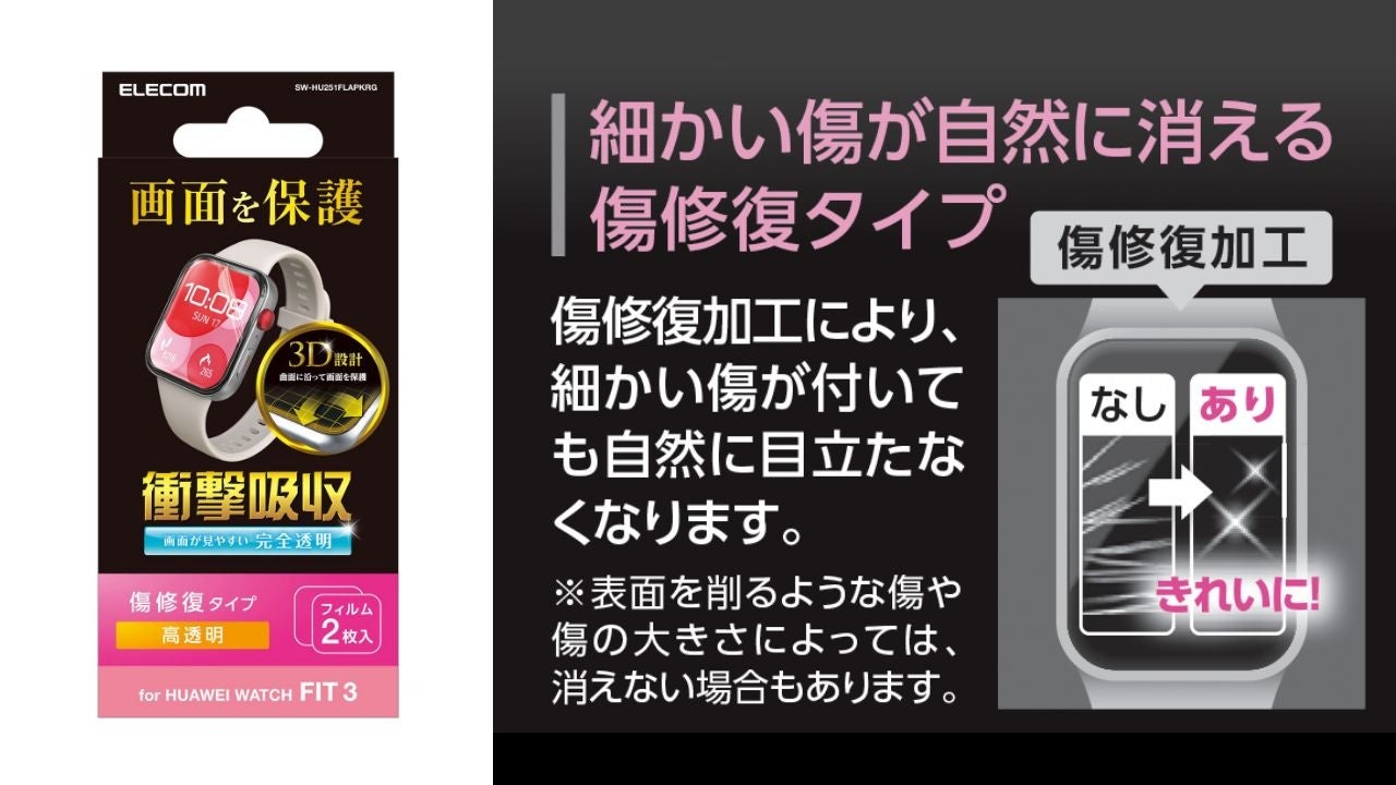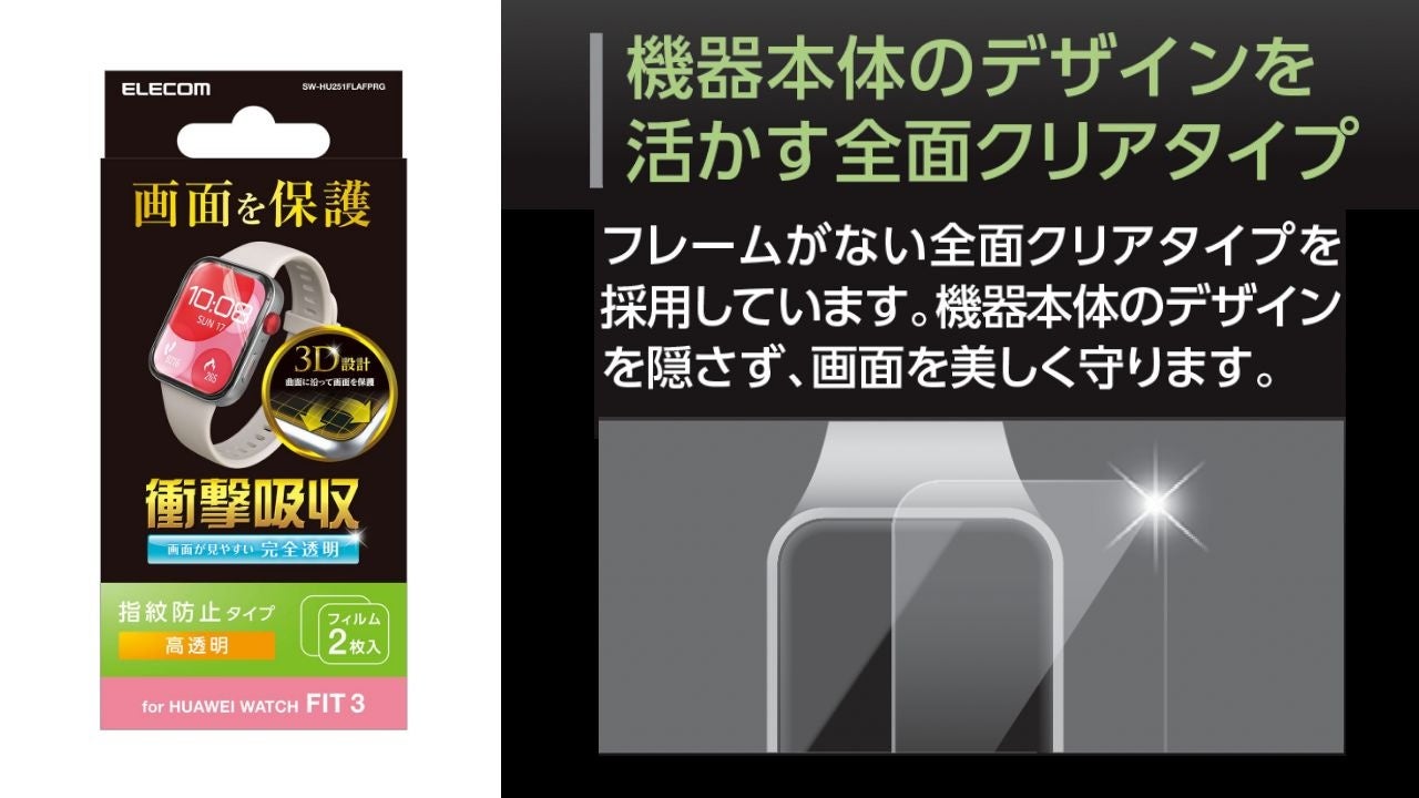エレコム株式会社(本社:大阪市中央区、取締役社長執行役員:石見 浩一)は、2タイプのHUAWEI WATCH FIT 3専用フルカバーフィルムを新発売いたしました。