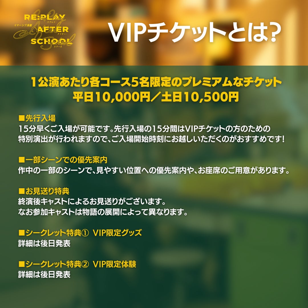 VIPチケットは1公演当たり各コース5名限定のプレミアムなチケットです。