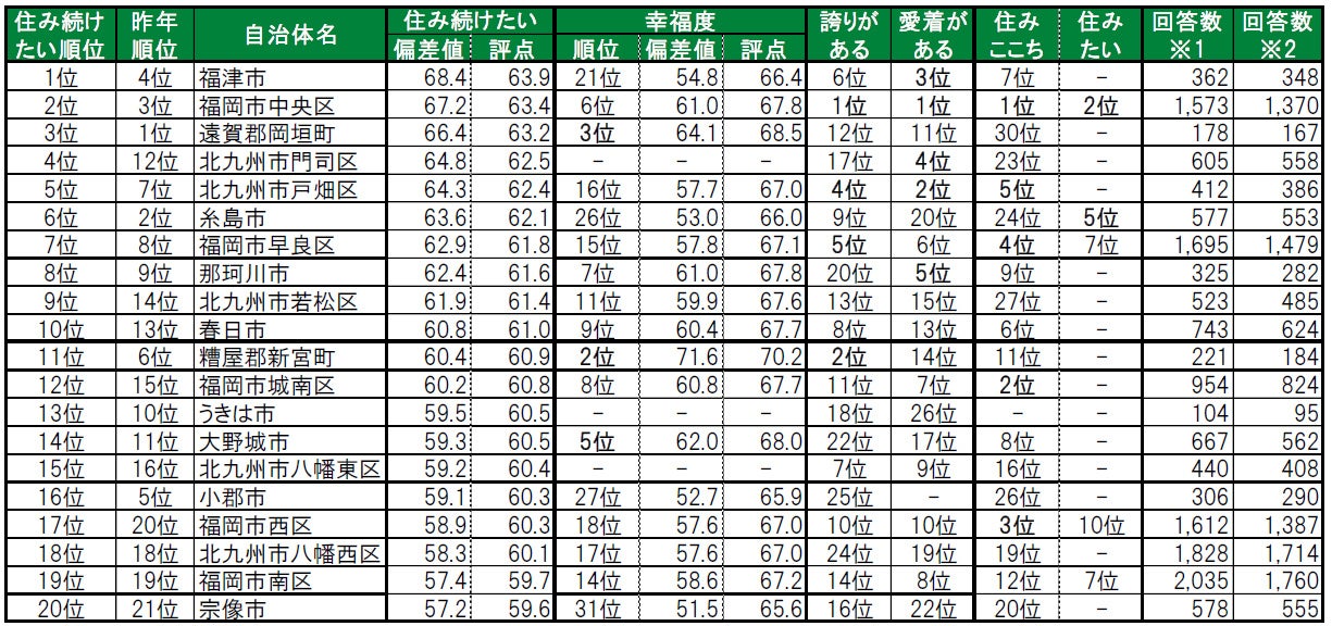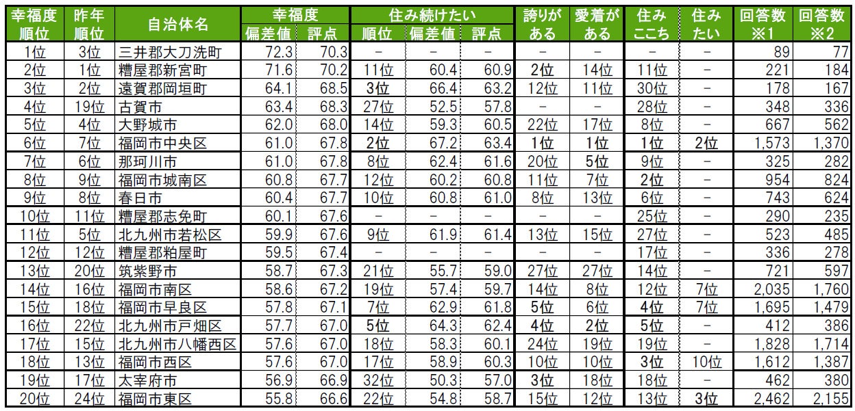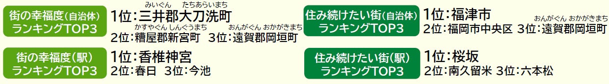 いい部屋ネット「街の幸福度 & 住み続けたい街ランキング2023<福岡県版>」(街の住みここちランキング特別集計)発表