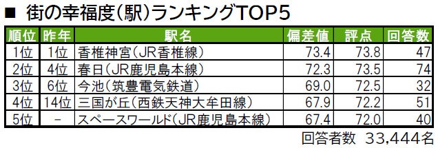 ■街の幸福度(駅)トップは、2年連続で香椎神宮