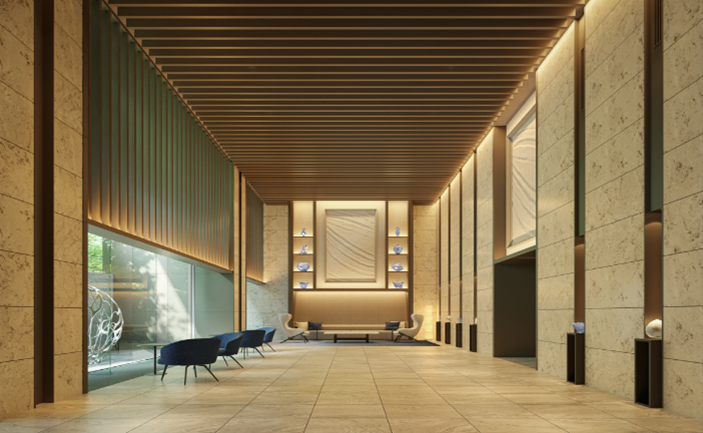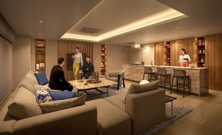 また、共用空間は、落ち着きと洗練を感じられるデザインとしています。エントランスホールは、2層吹き抜けで、格式を感じさせながらも入居者を温かく迎える空間としました。その他、ラウンジやゲストルーム、パーティラウンジ、ゴルフラウンジ、主に小学生~10代のお子さまが学習できるティーンスペース等、入居者の日々のくらしを豊かにする多彩な施設をご用意します。