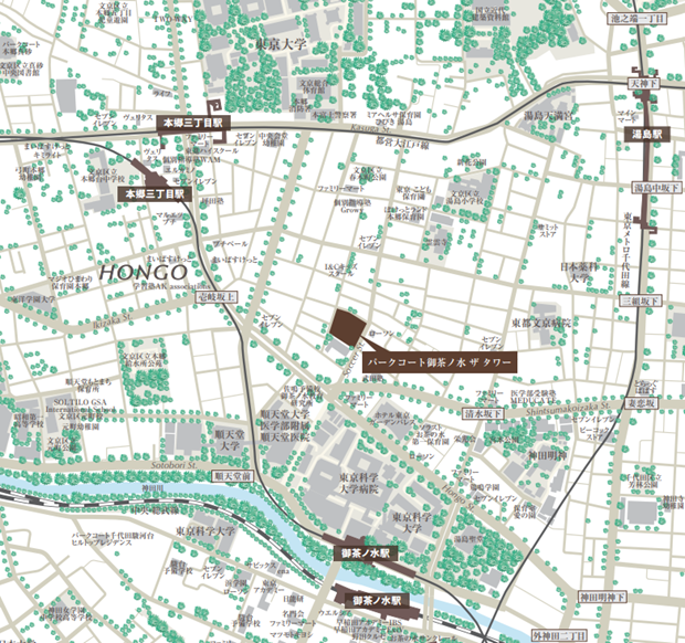 東京メトロ丸ノ内線「御茶ノ水」駅 徒歩7分 JR中央・総武線「御茶ノ水」駅 徒歩8分 東京メトロ丸ノ内線「本郷三丁目」駅 徒歩8分 東京メトロ千代田線「湯島」駅 徒歩10分 |