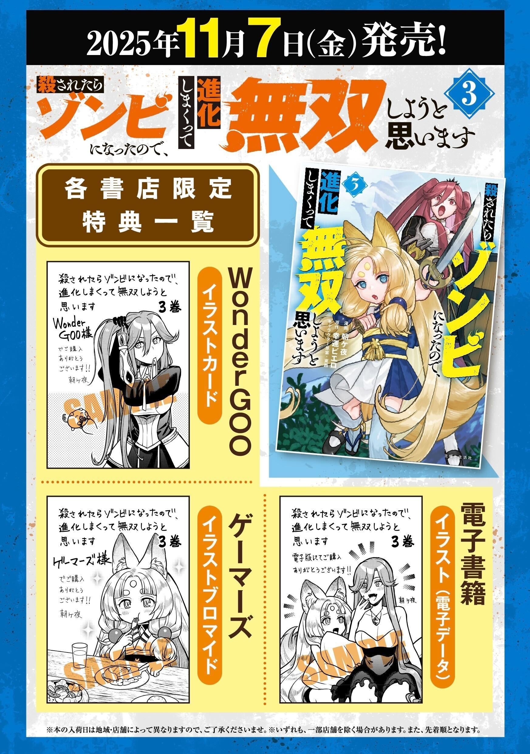 【メイドオーク&妖狐少女の異種族パーティーで最強に成り上がれ!】『殺されたらゾンビになったので、進化しまくって無双しようと思います(コミック)3』11/7(金)発売/PASH! コミックス