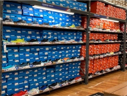 売場各コーナーにおいては、最大限商品を陳列し、特にシューズは約20000点と圧倒的な商品量を保持しています。中でもナイキ、ニューバランス、ホカのランニングシューズは国内最大級の商品量を誇り、お客様に商品を選ぶ楽しみを提供していきます。
