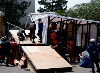 被災地の状況を模擬したモジュールを使うことで、訓練参加者(一般住民・職員・救助隊など)が座学では得られない臨場感と判断力が養われます。