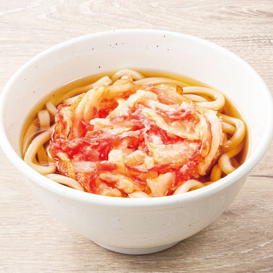 東京を中心に1都3県で133店舗を展開する「富士そば」で人気の紅生姜天を、だしの効いたうどんに