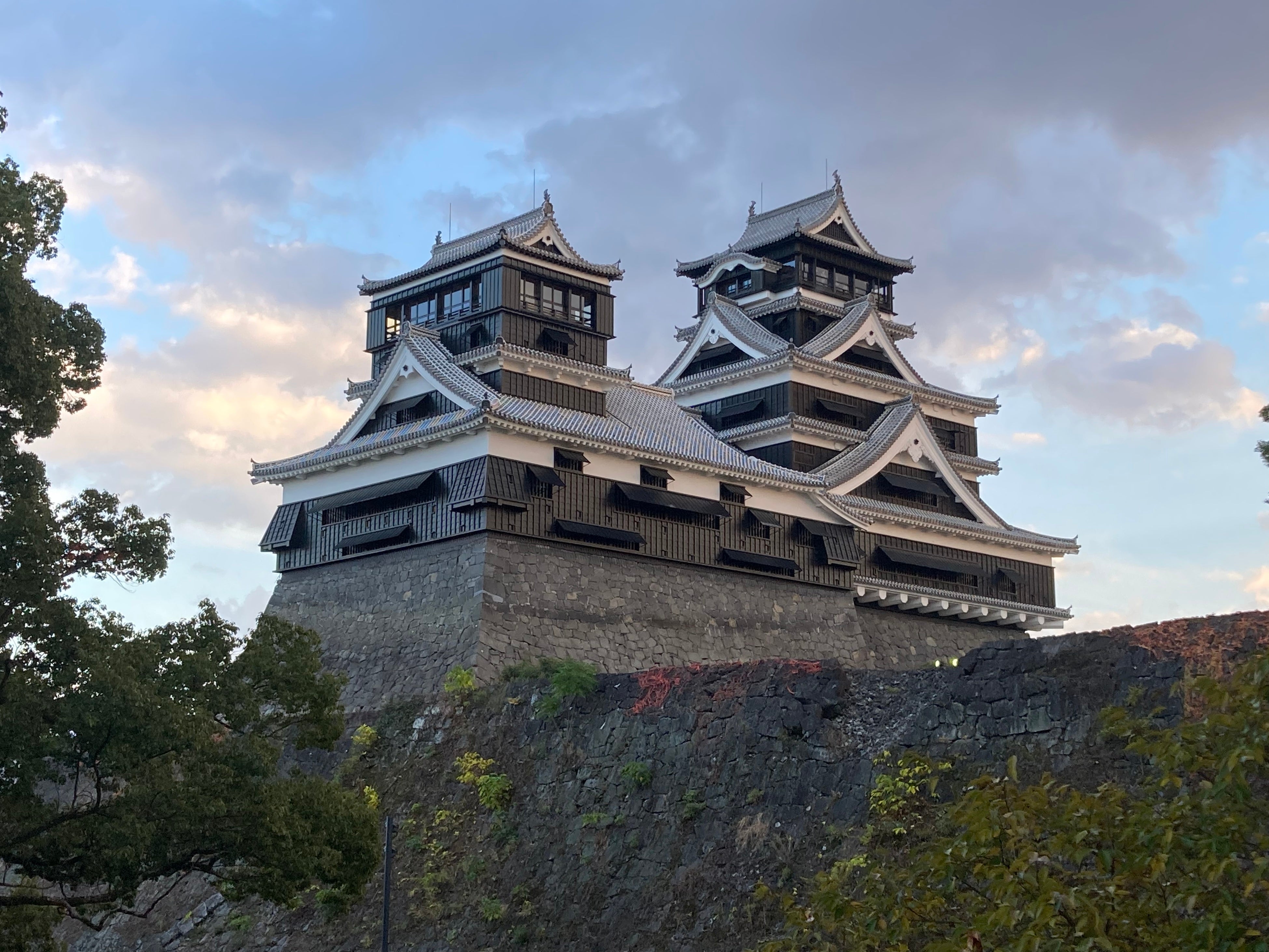 そしていよいよ名城・熊本城の近くへ。復旧が進み今年公開が再開した、美しい天守閣に3人も感激。