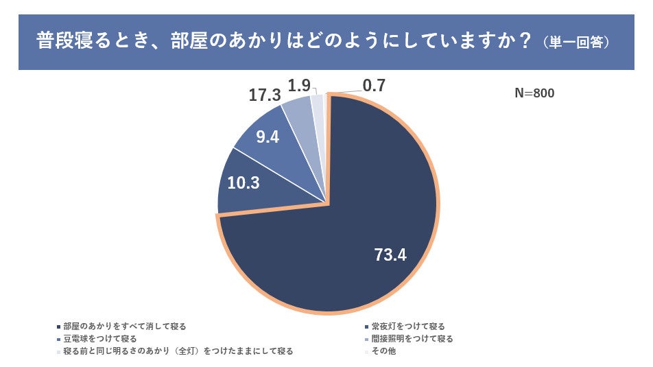 ・全部消す?常夜灯をつける?寝るときのあかりは「すべて消して寝る派」が73.4%と圧倒的に多かった