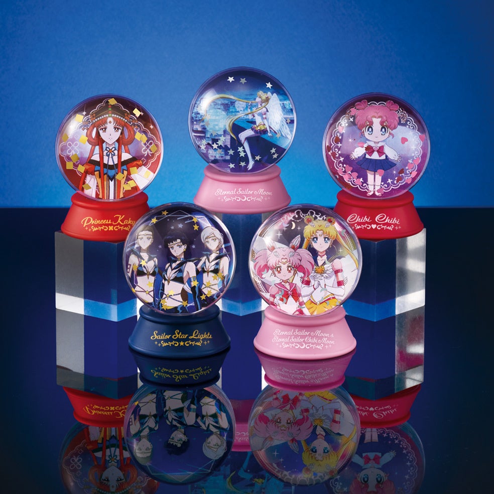カプセルドームの中にキャラクターがプリントされたシートとキラキラしたスパンコールがとじ込められており、ドームに水を入れて付属の台座に設置するとウォータードームが完成します。机の上などのちょっとしたスペースに飾れるインテリアアイテムです。 価格:400円/1回(全6種) © 武内直子・PNP/劇場版「美少女戦士セーラームーンCosmos」 製作委員会 © Naoko Takeuchi |