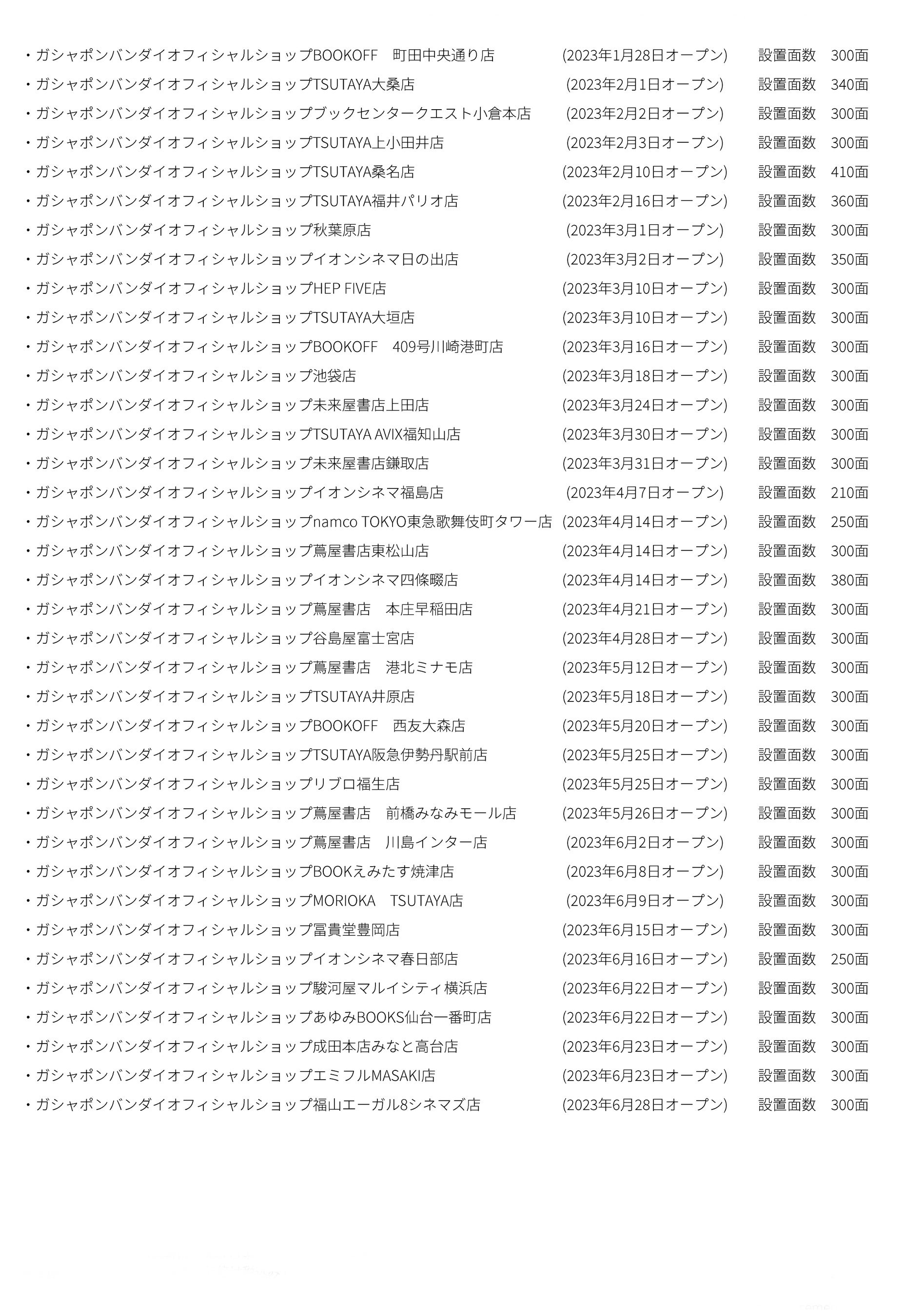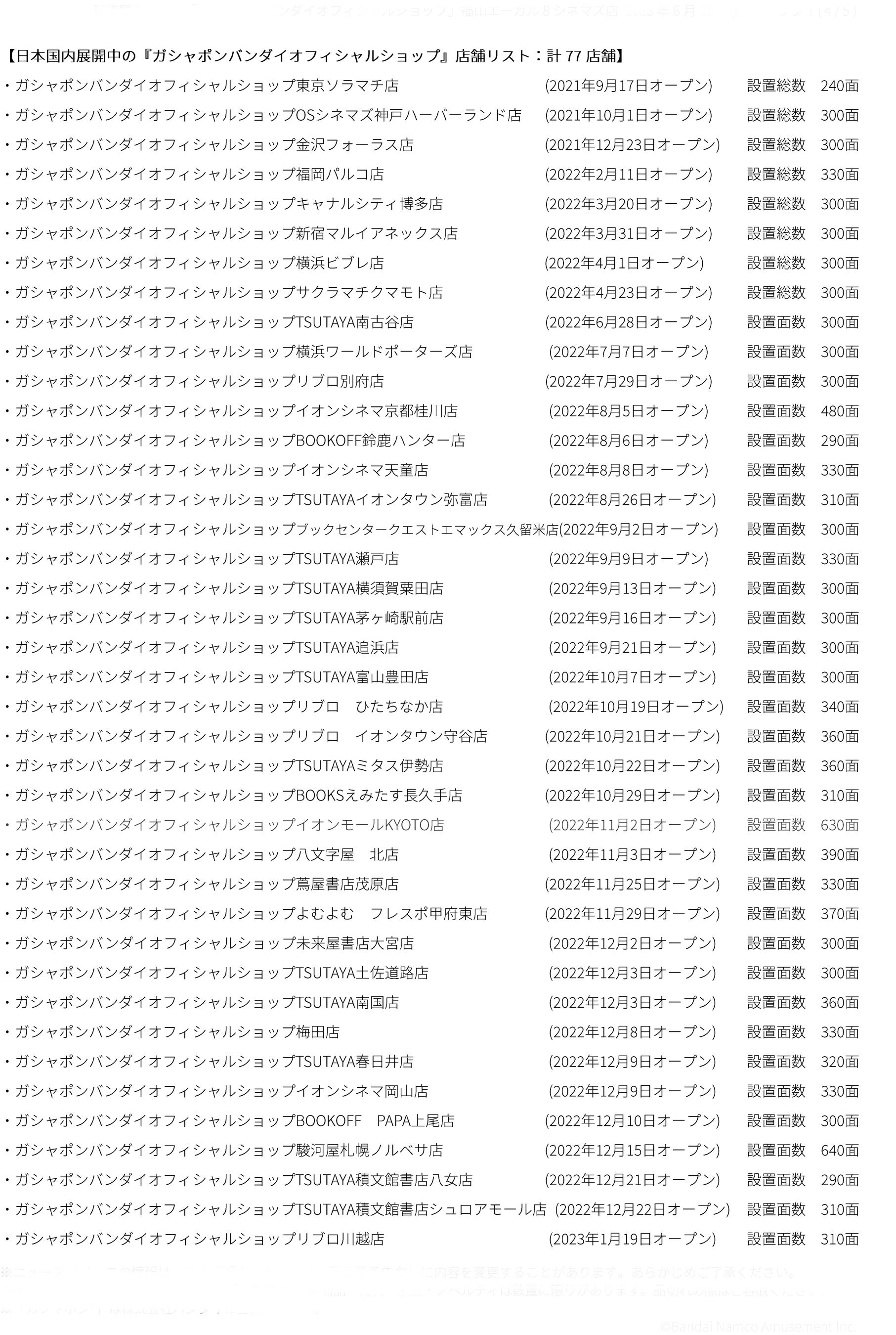 【日本国内展開中の『ガシャポンバンダイオフィシャルショップ』店舗リスト:計77店舗】