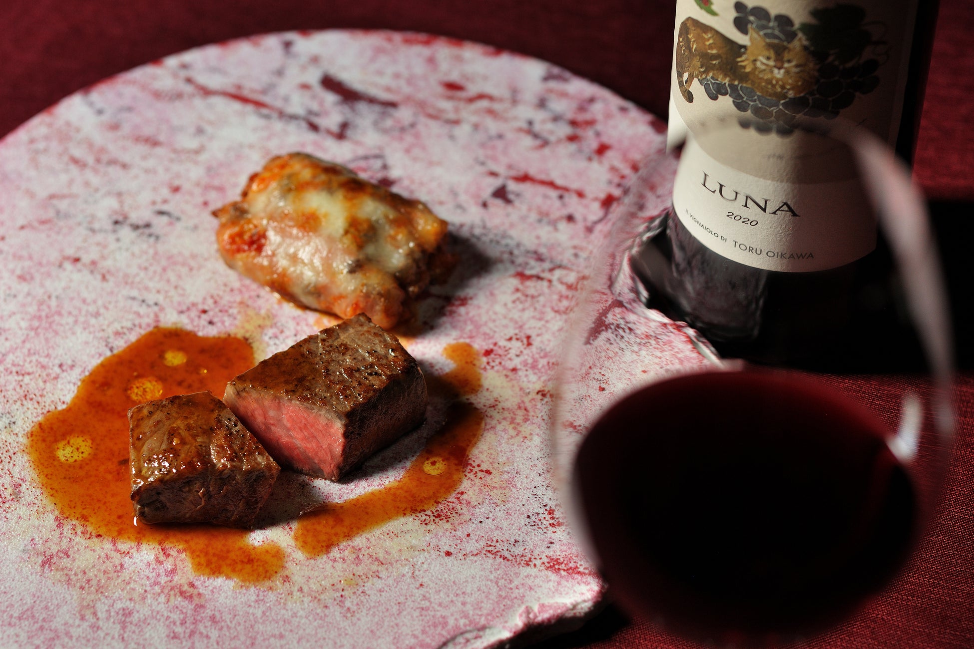 完熟した葡萄を使用したワインのベルベットのような滑らかなタンニンと、ミルキーで柔和な牛肉の脂質の旨味と相性の良さが感じられる組み合わせです。