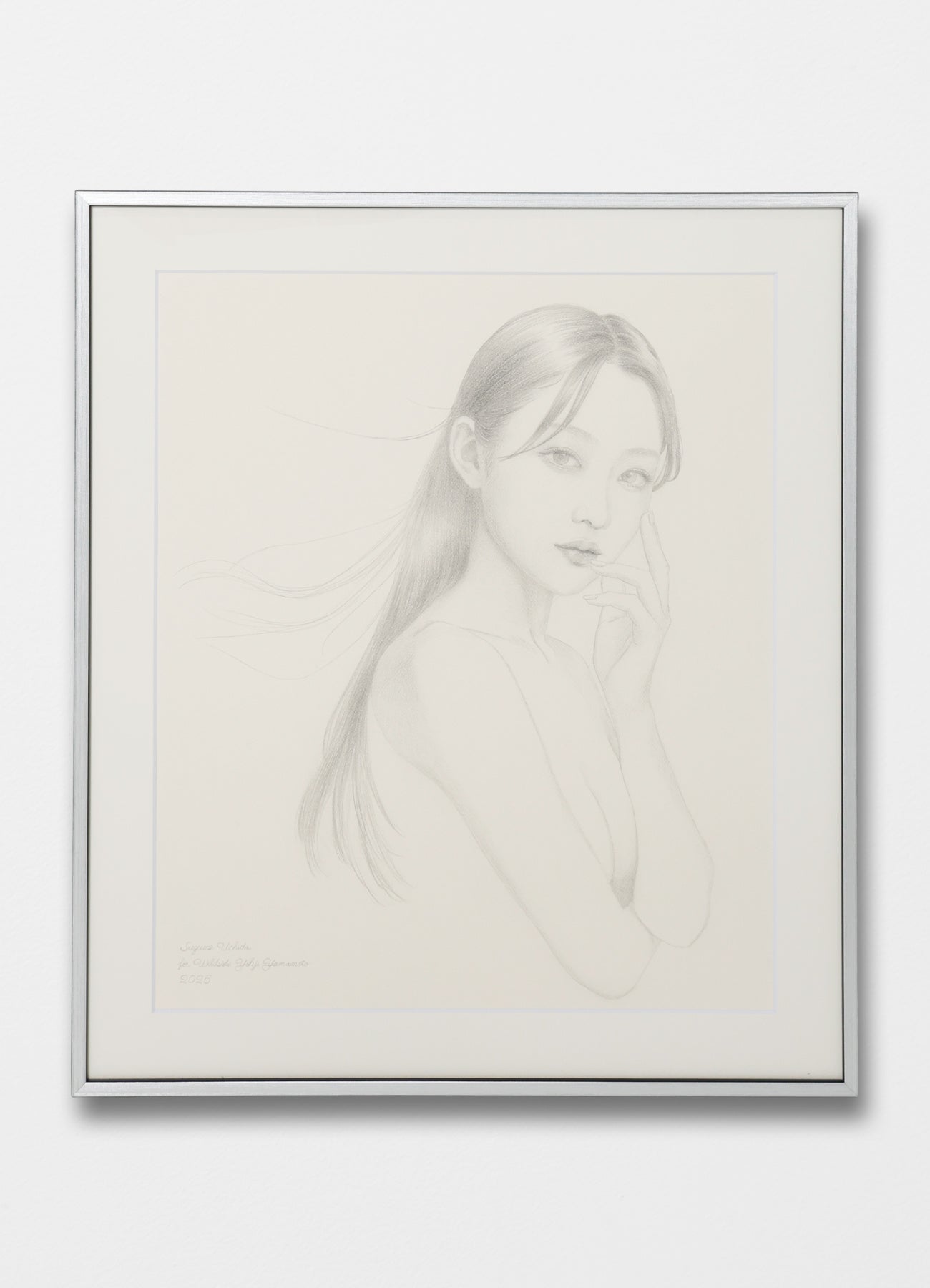 美人画「春の風」は、 WILDSIDE YOHJI YAMAMOTO HARAJUKUのオープン2周年を記念し、内田氏が特別に描き下ろした作品です。株式会社ヨウジヤマモトとの初のコラボレーション、Yohji Yamamoto POUR HOMME 2018 S/Sコレクションにて発表した美人画に立ち返り、今回の作品ではより立体的なポージングを追求。春風を思わせる柔らかな動きで髪をなびかせ、軽やかな空気感を纏う作品に仕上がりました。