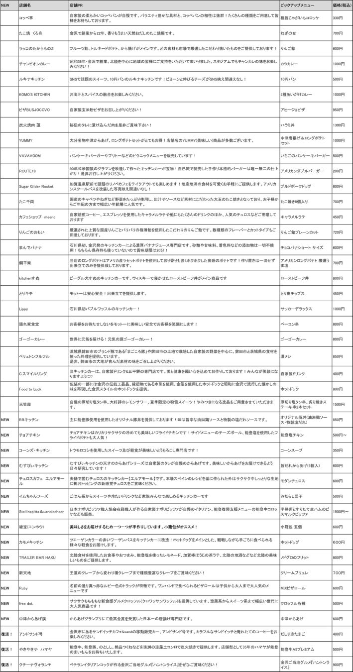 43台が登録!ホームゲーム出店キッチンカー決定!
