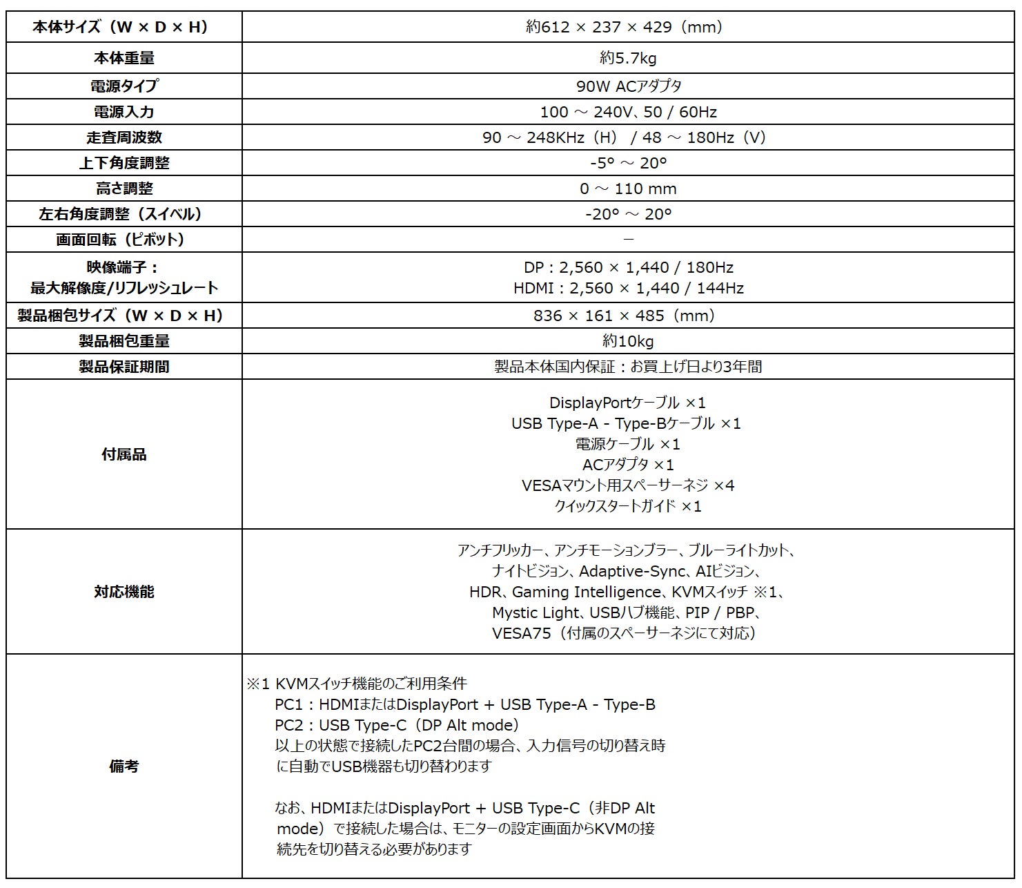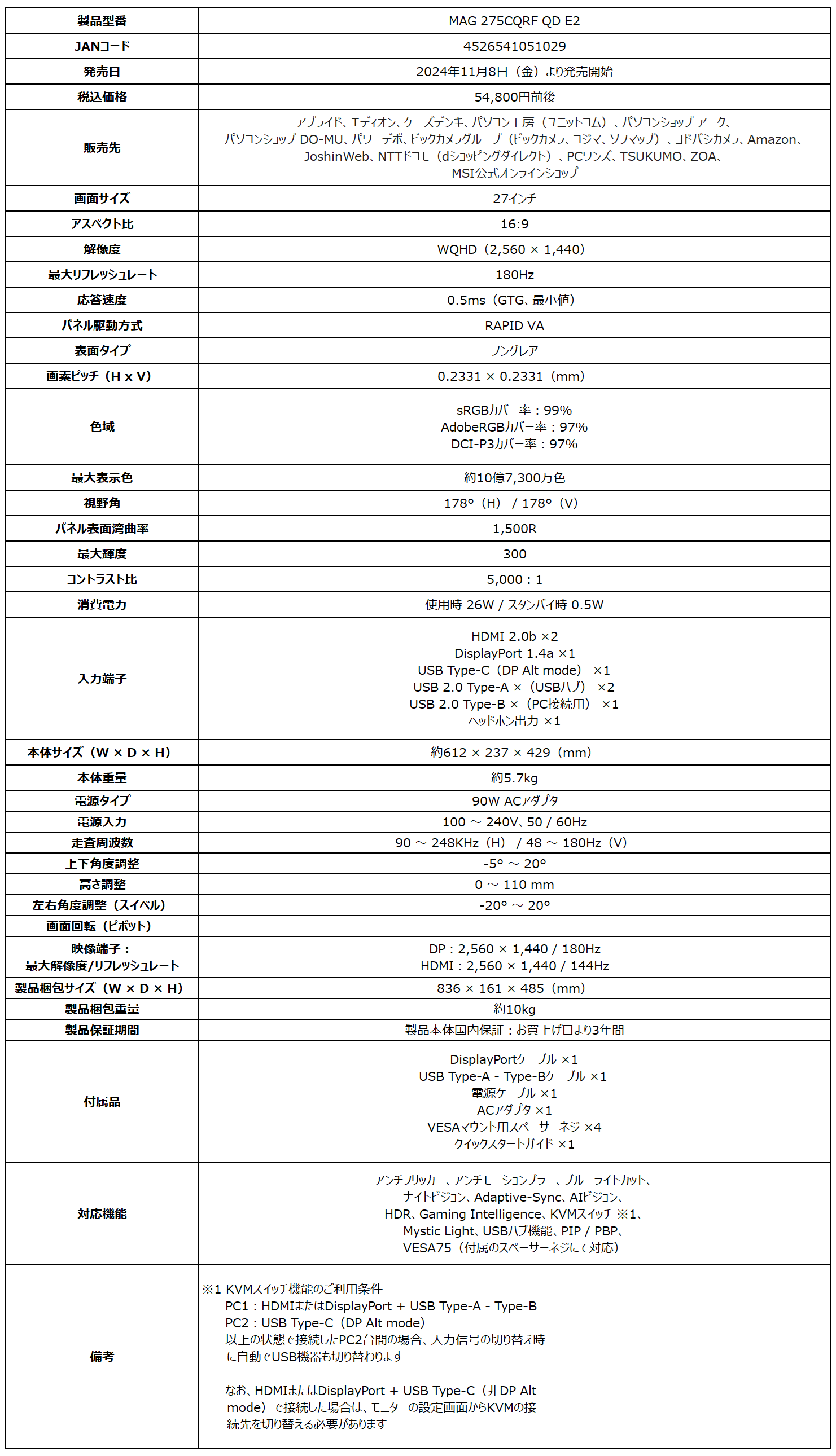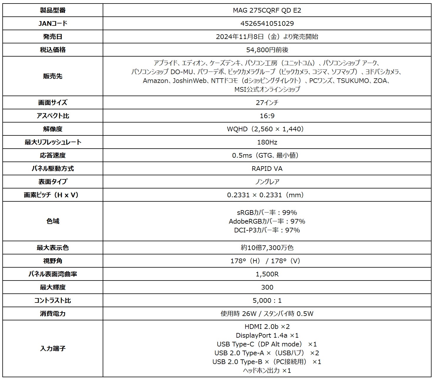 ■ MAG 275CQRF QD E2製品ページ: https://jp.msi.com/Monitor/MAG-275CQRF-QD-E2
