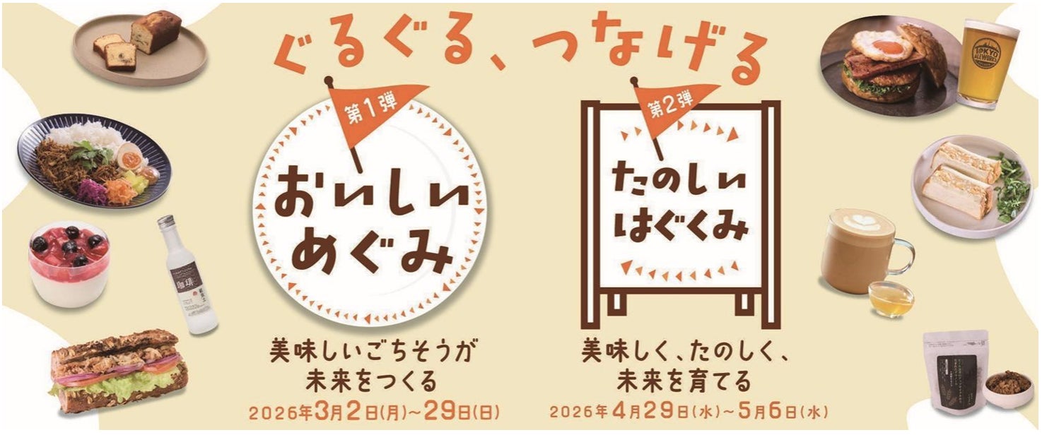 株式会社JR東日本クロスステーション デベロップメントカンパニー(本社:東京都渋谷区、カンパニー長:白田義彰)は、運営する商業施設「エキュート秋葉原」「エキュートエディション渋谷・横浜・新橋・有楽町・御茶ノ水」「マーチエキュート神田万世橋」「原宿駅店舗」にて、サステナブルフェア『ぐるぐる、つなげる』フェアを開催します。2026年3月2日(月)から3月29日(日)にかけて第1弾となるグルメフェア「おいしいめぐみ」フェアを開催し、続く第2弾として、2026年4月29日(水)から5月6日(水)まで、サステナブルを体験できるワークショップ「たのしいはぐくみ」フェアを実施します。
