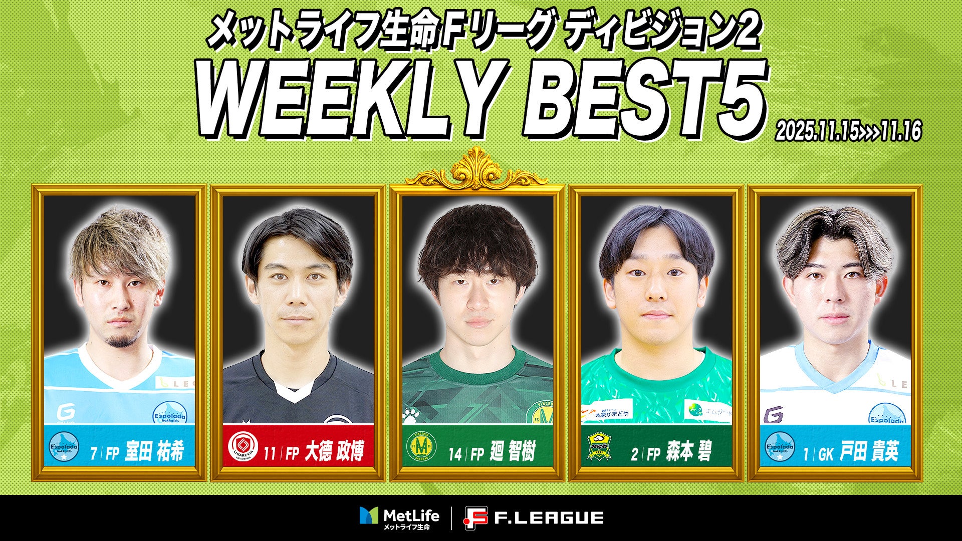 11月15日(土)〜11月16日(日)に実施したメットライフ生命Fリーグ2025-26 ディビジョン2 第15節におけるベスト5をお知らせいたします。