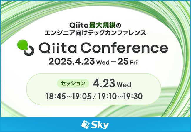 Sky株式会社は、2025年4月23日(水)~4月25日(金)にオンラインで開催される、Qiita株式会社主催のオンラインイベント「Qiita Conference 2025」にダイヤモンドスポンサーとして協賛いたします。