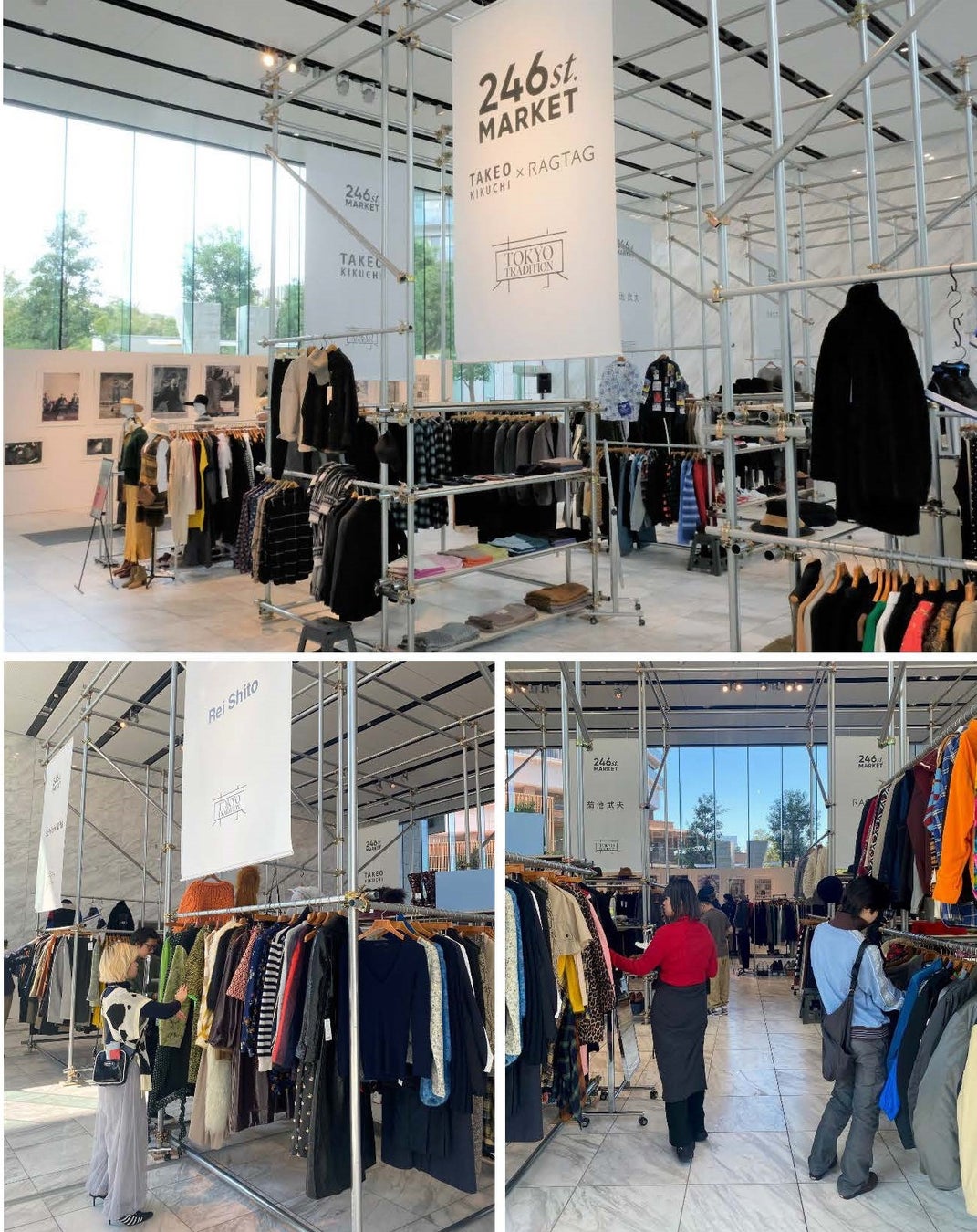ユーザーをつなぐPOP-UP型イベント「246st.MARKET(ニイヨンロクストリートマーケット)」を開催いたしました。「GOOD FOR FUTURE」をテーマに6回目の開催となった今回は、来年40周年を迎えるメンズブランドTAKEO KIKUCHI(タケオキクチ)とユーズドセレクトショップRAGTAG(ラグタグ)をフィーチャー。ワールドプラットフォームサービスが空間創造を手掛けた会場にはRAGTAG商品センターにてクリエイターが厳選した400点のユーズドアイテムにRAGTAGスペシャルセレクトの400点を加えた約800点が一堂に並びました。