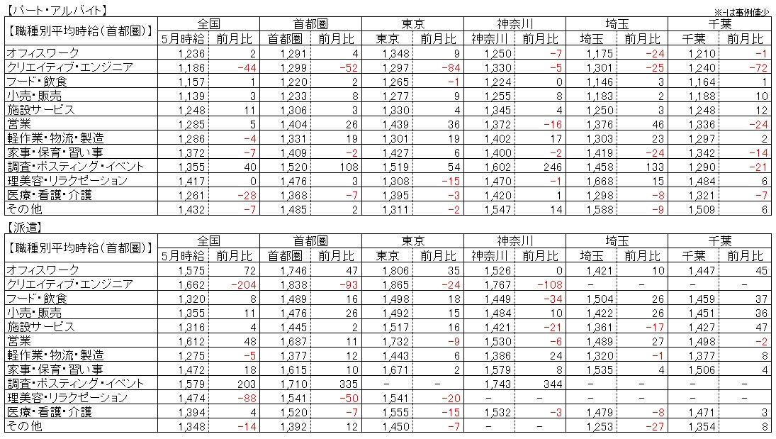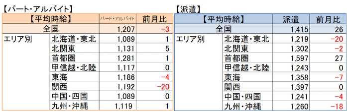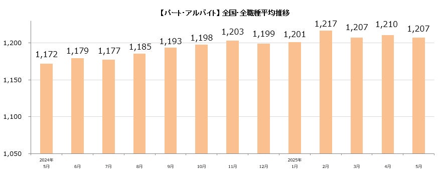 【パート・アルバイト】全国・全職種平均時給は1,207円。前月比ー3円。前年同月比+35円。
