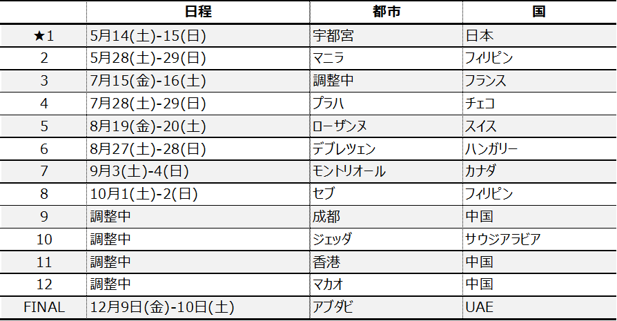 2022年5月14日(土)World Tour Utsunomiya Opener 予選(予定)