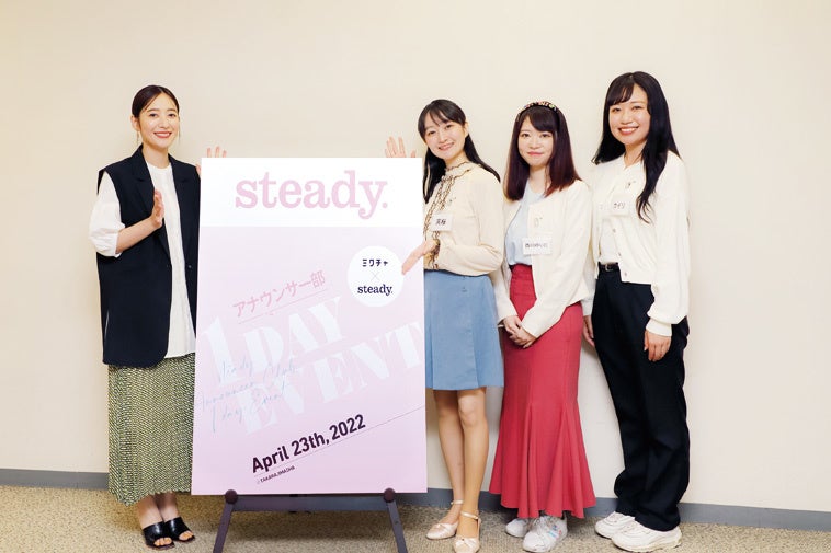 入部した3名には「steady. アナウンサー部」の特典として、「steady.」での誌面紹介に加え、アナウンサーに必要なスキルを学ぶ「アナウンサー1DAY特別イベント」にご参加いただきました。