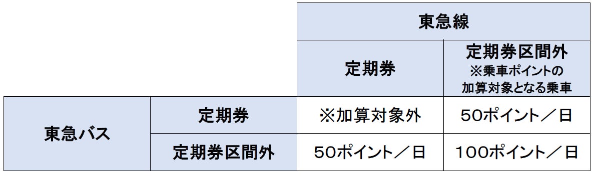 ※1 東急線と東急バスの利用券種(定期券・定期券区間外)の組み合わせに応じてTOKYU POINTの加算数が変わります。詳細は別紙をご覧ください。