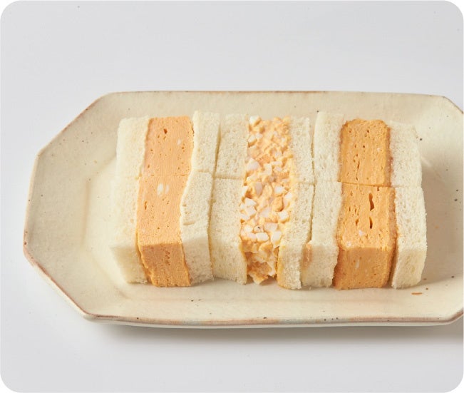 マヨネーズの酸味と濃厚卵のマイルドな味わいをたっぷり楽しめるタルタルサンドとボリュームのある厚焼きたまごカツサンドのセット。