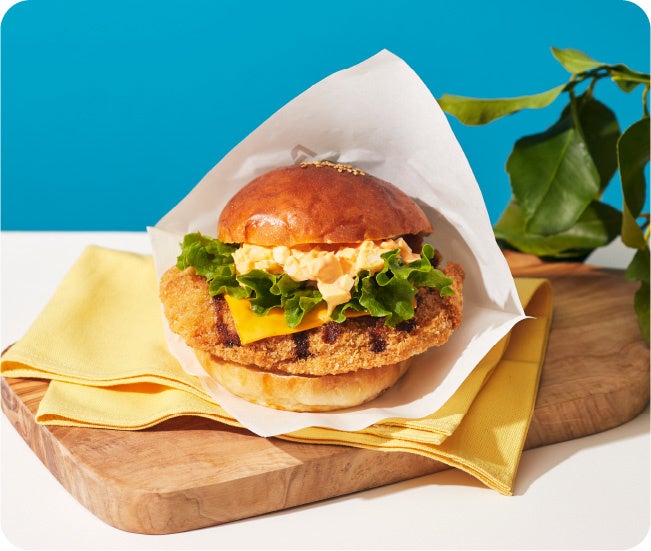 大ぶりのフライドチキンをたっぷりのタルタルソースと豪快にサンド。隠し味にゆずこしょうを加えた、オトナの味わい。