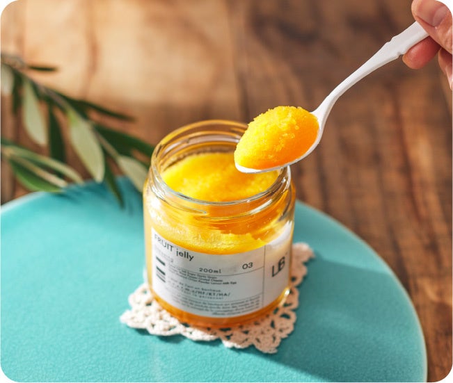 清々しい酸味のある果肉、果汁とほんのり甘味のある果皮と果肉の間の白い内果皮を一緒に使った日向夏のジュレ。シャリシャリとした独特の食感も楽しいさわやかなおいしさです。