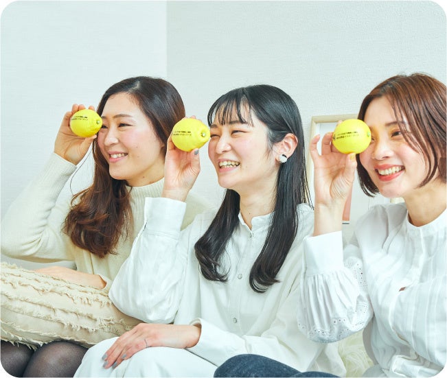 春のごきげんプロジェクトのため、レモン片手に阪神百貨店の社員でゆる~く結成?された「ごきげんレモン娘」。ふだんはフード、ファッション、企画とそれぞれの業務についています。